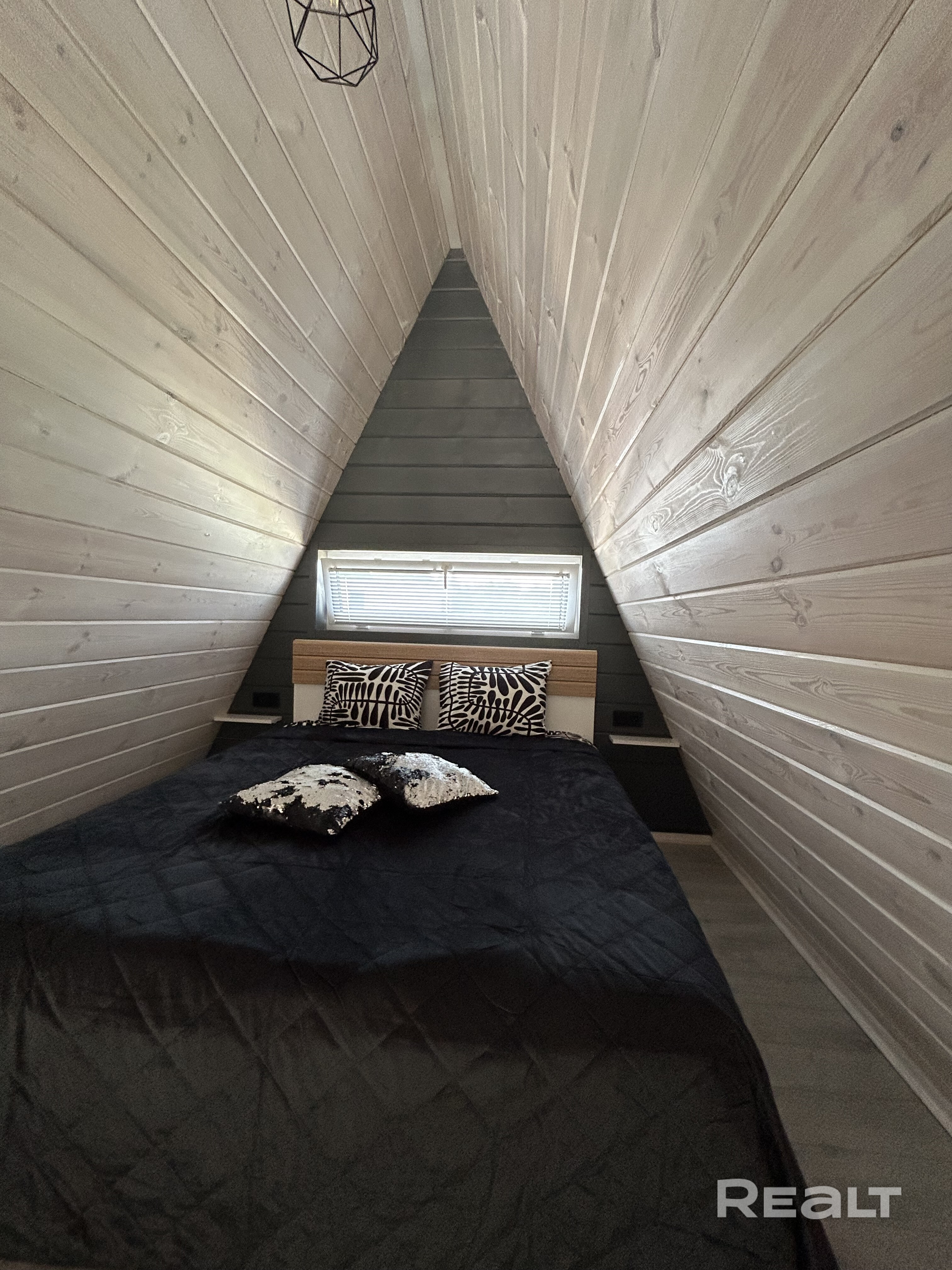 Дом-шалаш , треугольного типа, расположенный около соснового леса. Предназначен для отдыха. Рассчитан на 4 человек. Есть мангальная зона, очаг, бассейн.