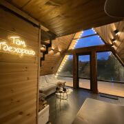 Добро пожаловать в уютный стильный домик, расположенный за городом Кобрина. В доме выполнен современный дизайнерский ремонт с использованием качественных материалов и новой мебели. А сам дом является необычным из-за своей треугольной формы. На территории домика установлен горячий чан, для любителей банных процедур и релакса под открытым небом. С нашей стороны мы предоставим: * Заселение 24/7 * Чистоту и уют. * Всю необходимую бытовую технику (холодильник, фен, проектор, муз колонка,чайник). *