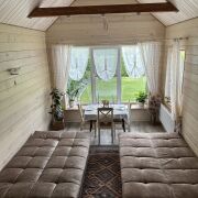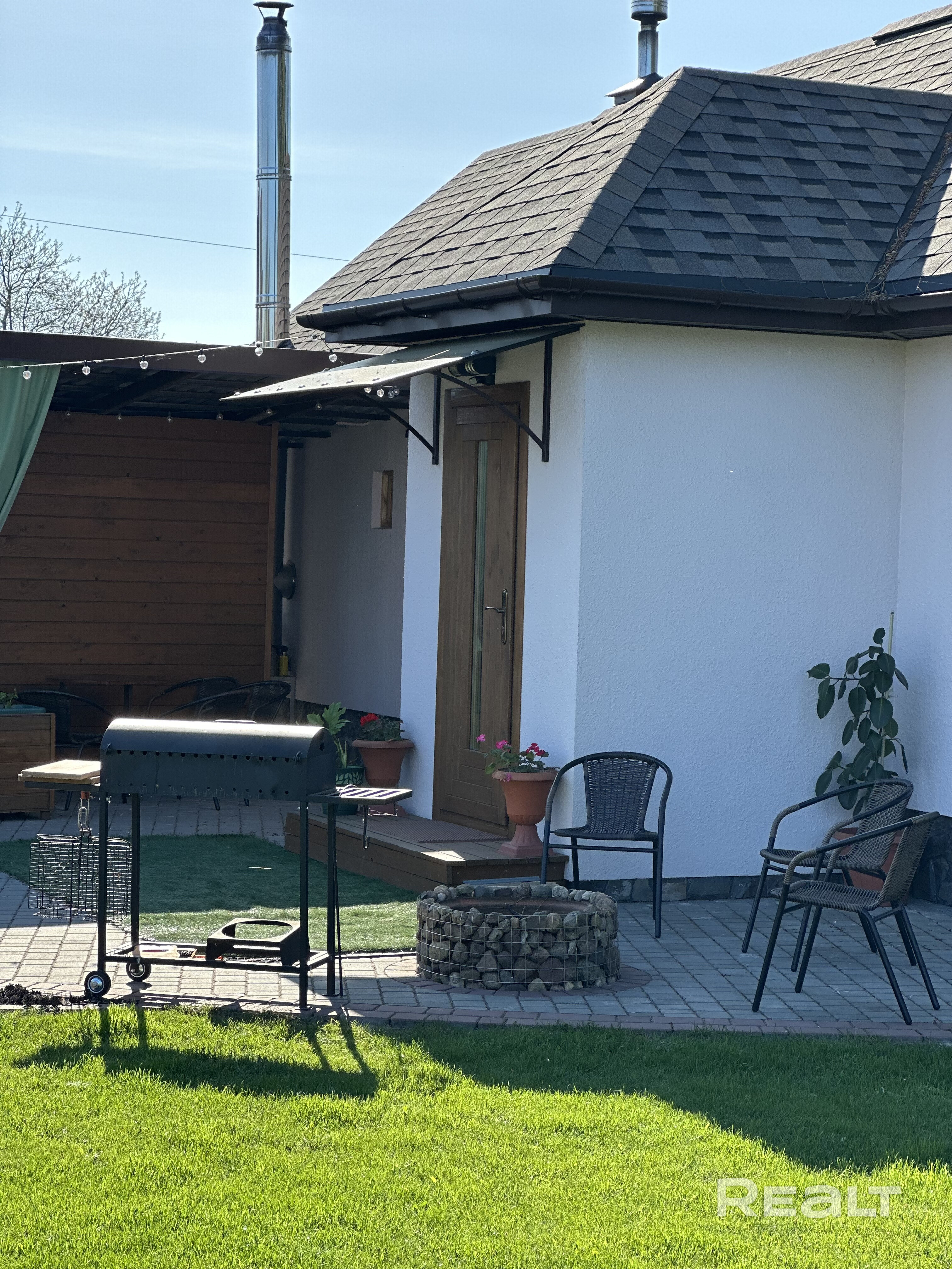 Уютный гостевой дом с баней на дровах! У нас есть просторная комната отдыха ( с двумя раскладными диванами), стол (до 10 человек), кухня (холодильник, микроволновая печь, эл. чайник, индукц. плита, вся необходимая посуда). Просторная душевая (2 душа). Комфортный санузел. Второй этаж с доп. спальными местами (4 спальных местами). Всего в доме 8 спальных мест. Отдых на свежем воздухе, просторный двор, зона барбекю, стол с уличной мебелью. Идеальное место для отдыха, мероприятий (10 - 12 человек).