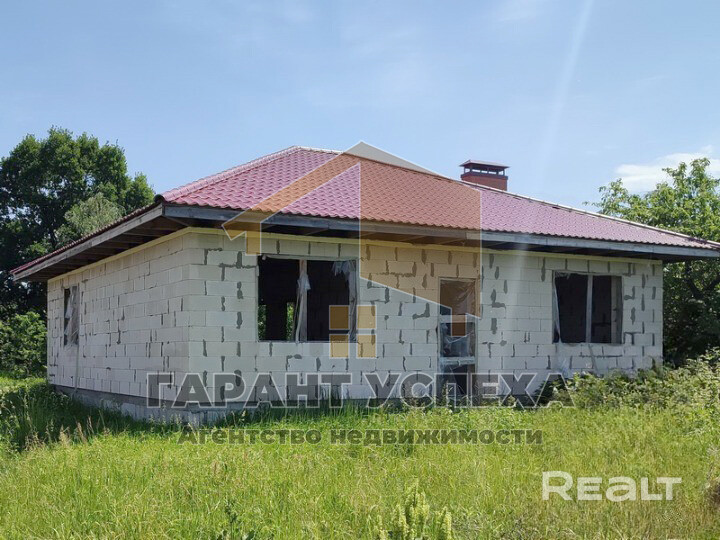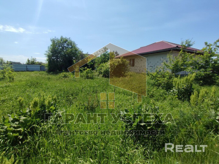 Лот 8029. Продается земельный участок для строительства и обслуживания жилого дома, на котором расположено незавершенное капитальное строение в ближайшем пригороде Бреста в Клейниковском сельском совете. Стены - блоки, внутренние перегородки из газосиликатных блоков. Фундамент - ленточный монолитный. Крыша- металлочерепица, внутренние перегородки выполнены из газосиликатных блоков. Планировка разработана с учетом эргономичности расположения жилых комнат и вспомогательной группы помещений.