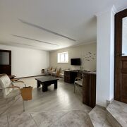 В цокольном этаже расположены дополнительные помещения: бильярдная с камином, арт-студия с отдельным входом и котельная-постирочная. На территории участка установлена просторная беседка из кирпича с мягкой кровлей. Во дворе имеется огород и плодово-ягодные насаждения.