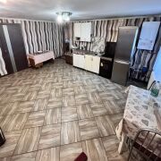 Аккуратное жилое состояние: в кухне, ванной и туалете на полу лежит плитка (теплый пол), в комнатах доска; потолок- дсп, штукатурка, стены -оклеены обоями, межкомнатные двери -деревянные, сантехника - новая, может остаться мебель.