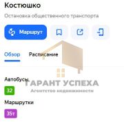 Транспортное сообщение: о.п. «Костюшко» автобус 32, а также маршрутное такси 35.