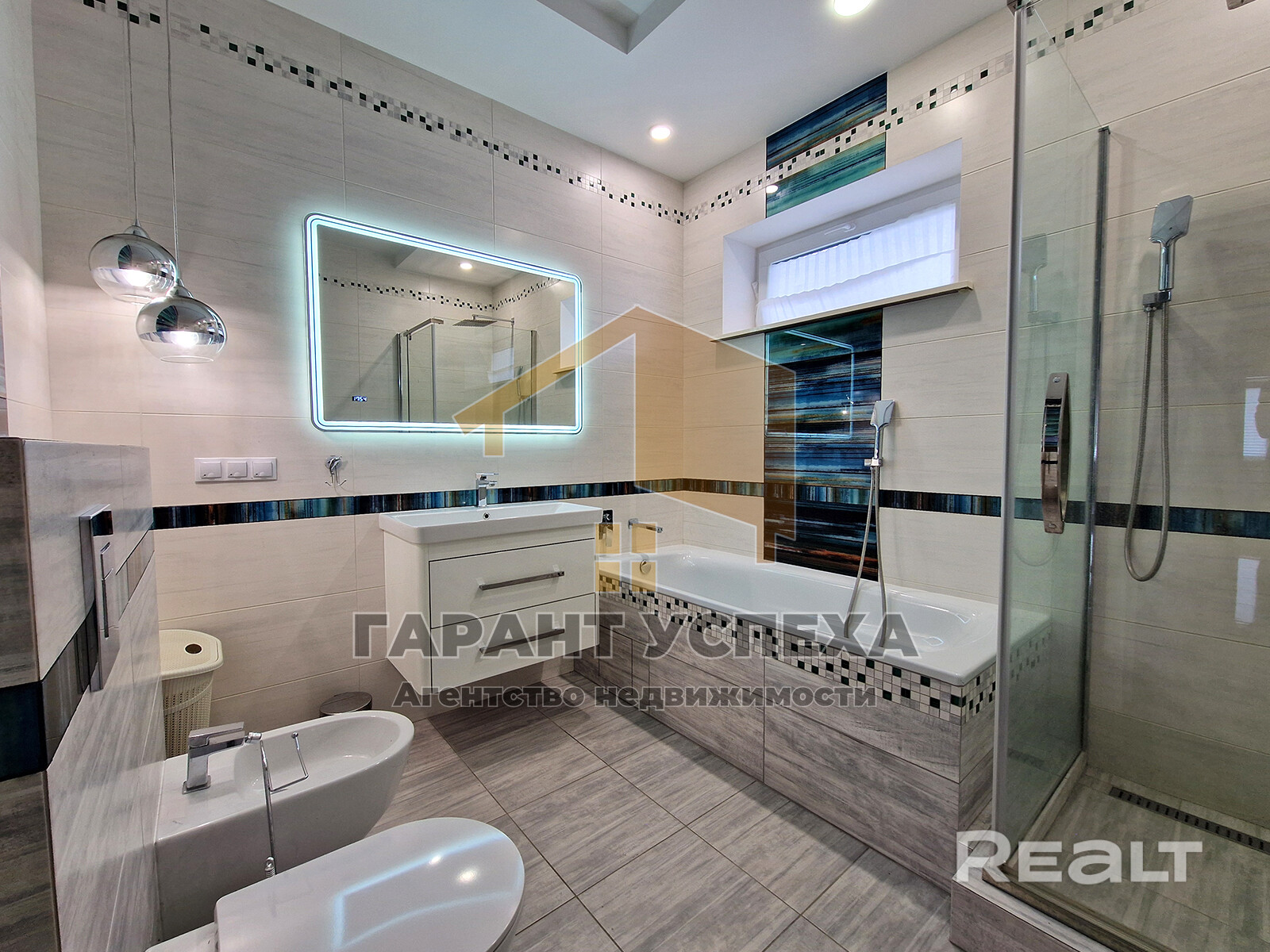 Два санузла: совмещенный и отдельный туалет. Остановитесь подольше на этих фото, рассмотрите внимательнее. Как сказал бы Леонид Каневский: «Из этого места не хочется уходить». Тут и душевая кабина, и полноценная ванная. Несколько источников света на выбор, которые создадут приятную атмосферу при принятии ванной.