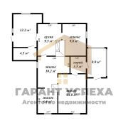 Общая площадь –79,3 кв. м, жилая – 41,6 кв. м, кухня – 9,5 кв. м. Высота потолка – 2,9 м. Четыре жилые комнаты 10,2/14,8/9,6/6,9 кв. м.