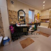 Общая площадь дома составляет 152,3 кв.м, жилая – 67 кв.м. На первом этаже дома размещены просторная гостиная площадью почти 22 кв.м, кухня, жилая комната, раздельный санузел, холл с лестничным маршем из массива дуба, вспомогательные помещения. Ещё две комнаты и совмещённый санузел находятся на мансардном этаже. Из одной комнаты имеется выход на балкон, с которого открывается живописный вид на сосновую посадку. Во всём доме сделан качественный ремонт, на полы, в зависимости от помещений, уложен ламинат или керамическая плитка, стены оклеены разноплановыми обоями, двухуровневые потолки из гипсокартона, помимо основного освещения имеют зональные точечные светильники. Все подоконники в доме выполнены из гранита.