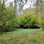Участок площадью 23.5 сотки располагается на высоком месте и окружен живописным лесом (на участке своя березовая роща), создавая атмосферу уединения и спокойствия. На территории участка имеются гараж, коробка для бани и беседка, что делает его идеальным для отдыха на свежем воздухе. Также предусмотрены две въездные группы для удобства доступа.
