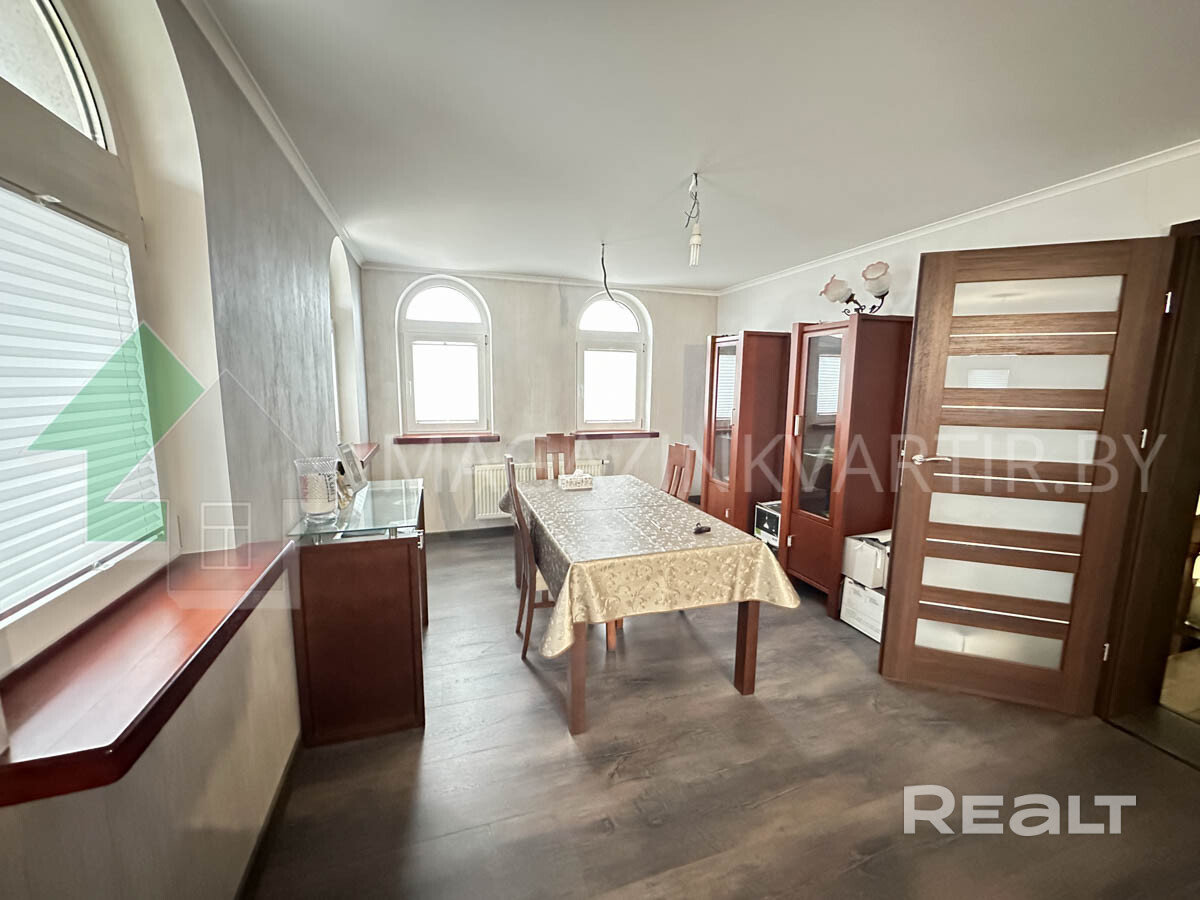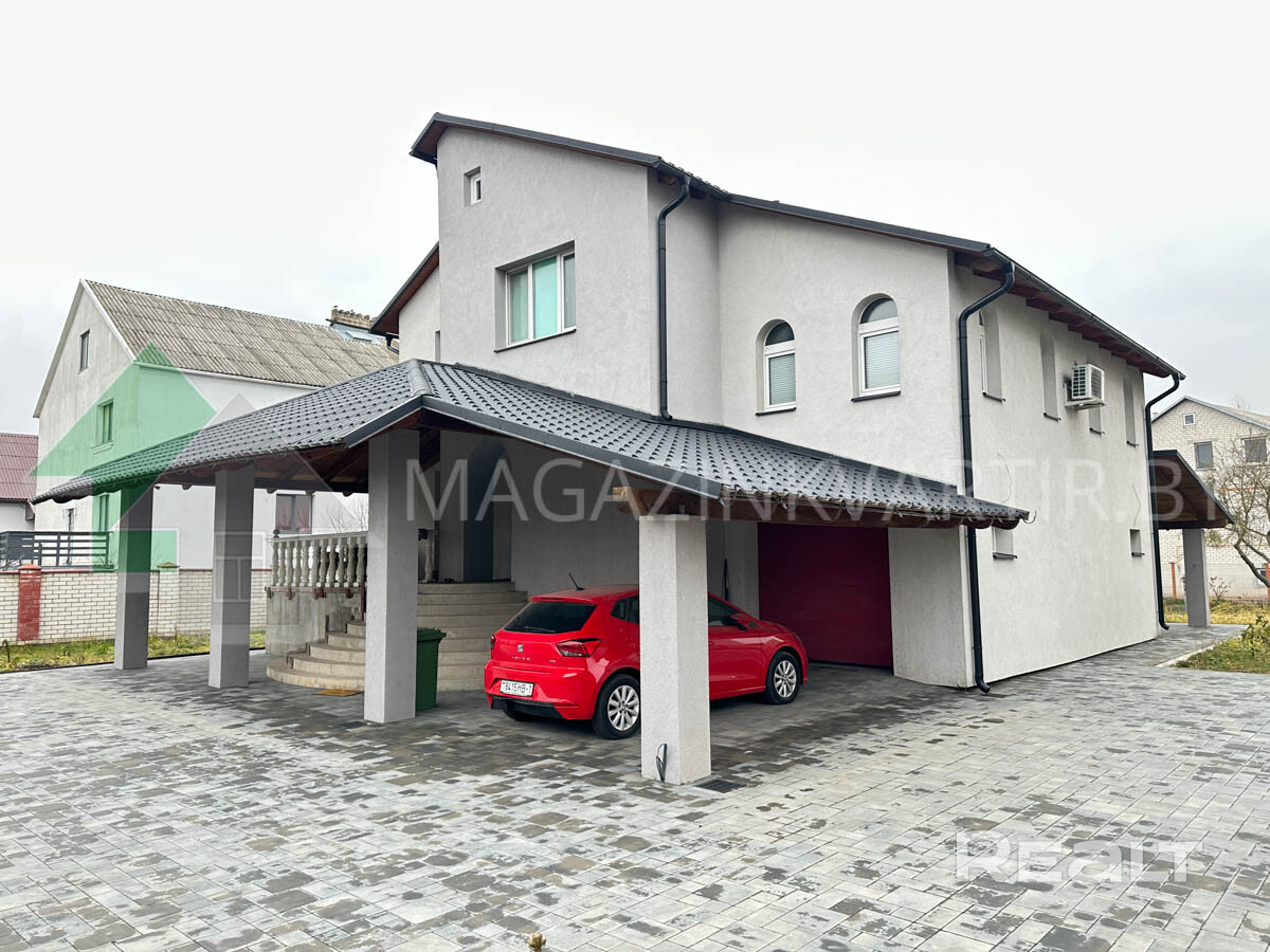 Предлагаем купить двухэтажный дом 2002 г.п. с земельным участком (частная собственность) 0,0779 га расположен в Бресте, район Берёзовка. Общая площадь жилого дома 156,7 кв.м., жилая – 71,6 кв.м., кухня 12,1 кв.м. Общая площадь здания (с гаражом) 254,9 кв.м. Гараж 30м2. Стены: кирпич/оштукатурен; кровля – металл. В доме удобная планировка: высота потолков 2,8 м. На первом этаже расположена: отдельная кухня 12,1 м2, гостиная, с/у раздельный, кладовая, дополнительный выход на улицу и в цокольный этаж. На втором этаже расположены 4 комнаты: две просторные спальни с гардеробными, детская и кабинет, совмещенный санузел. Потолки - снежка, полы – доска/плитка/ламинат. Есть кухонный гарнитур. Ванная комнаты облицованы керамической плиткой, оборудованы сантехникой. Коммуникации: водоснабжение, электричество, газ (отопление - газовый котел) – централизованные, канализация - автономная. Земельный участок площадью 0.0779 га (частная собственность), выполнено благоустройство тротуарной плиткой, ограждении по периметру (въездные ворота откатные), на участке высажены молодые туи. Подъездные пути – асфальт. Рядом супермаркеты, остановка 1 минута. Код 24197 разумный торг. Договор №197 от 18.09.2024г.