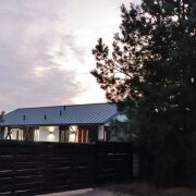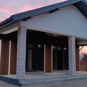 Дом построен из блоков, утеплен, а крыша выполнена из фальца.
