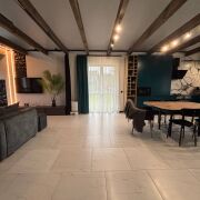 В 2022 году выполнена полная реконструкция. Сделан новый ремонт. Выполнены следующие работы: заменена полностью крыша: кровля утепление 150 и 200, металлочерепица. Фасад с утеплением. Фундамент полностью новый, сделана отмотстка. По всему дому разведены водяные полы, гребенка на 6 контуров, работает от газового котла, дополнительно установлен датчик температуры воздуха, что значительно экономит отопление. В доме очень тепло за счет максимально утепленных стен и кровли. Вода центральная, канализация местная. Коммуналка в отопительный период выходит до 150 рублей (инет, газ, вода, вывоз мусора, электроснабжение)/ низкие деревенские тарифы. Участок далеко от дороги- 25 соток.