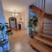 Дом имеет 2 полноценных этажа, большое подвальное помещение - 63,2 м2 гараж под домом - 43,03 м2, комнаты и кухня просторные, светлые, на полу качественно уложен ламинат и плитка, на кухне плитка с подогревом. Санузлы раздельные на первом и втором этажах, все выложено плиткой. На втором этаже есть оранжерея с открытой лоджией.