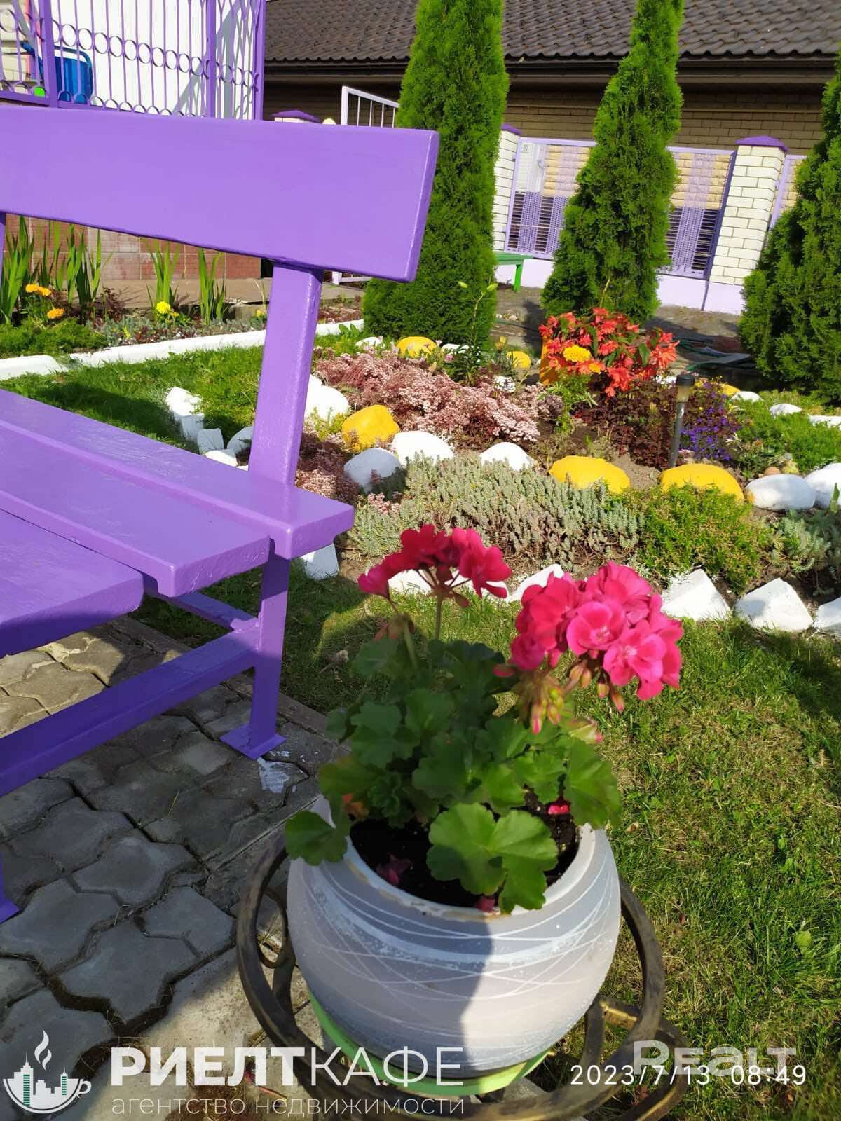 Земельный участок -  8,59 сотки. Двор благоустроен, частично газон, частично плитка, растут фруктовые деревья, много различных цветов и насаждений. Можно сказать - цветочный дом.