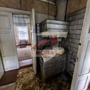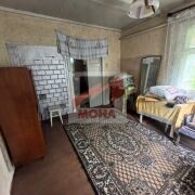 Общая площадь строения 112 метров, в доме 5 комнат, 3 входа, 2 действующих печи, есть газ и свет, канализация отсутствует, колодец на улице.