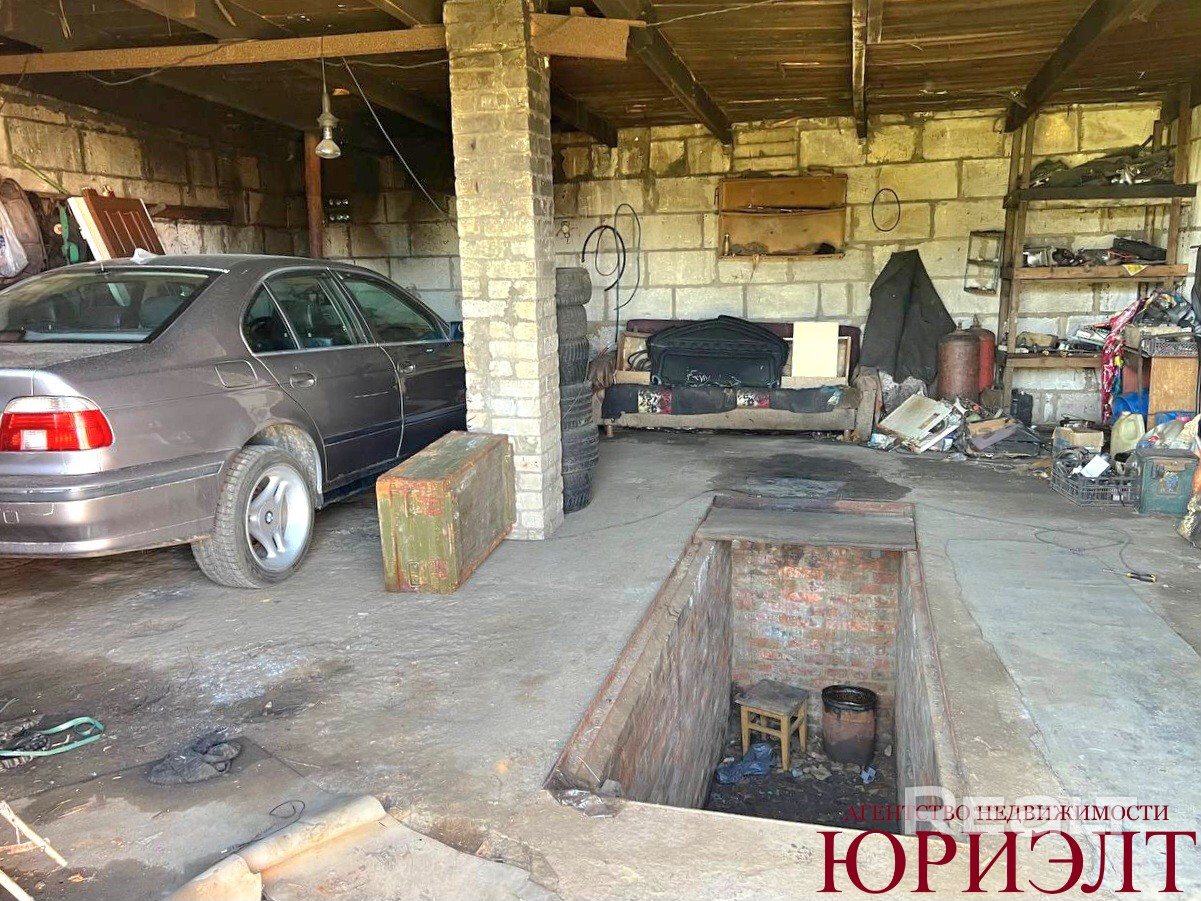 На участке 10 соток расположены: два блочных гаража с ямой, сараи.