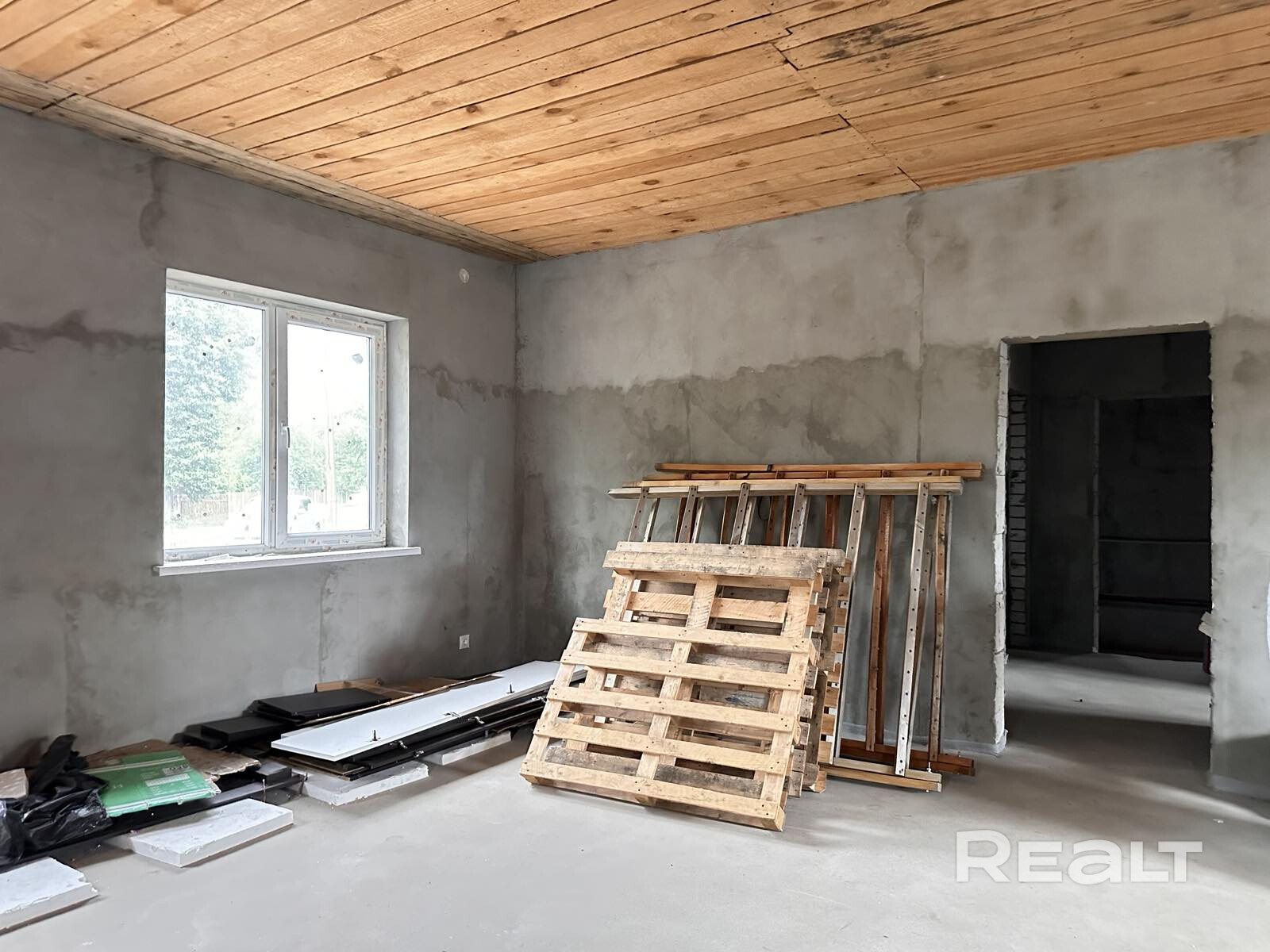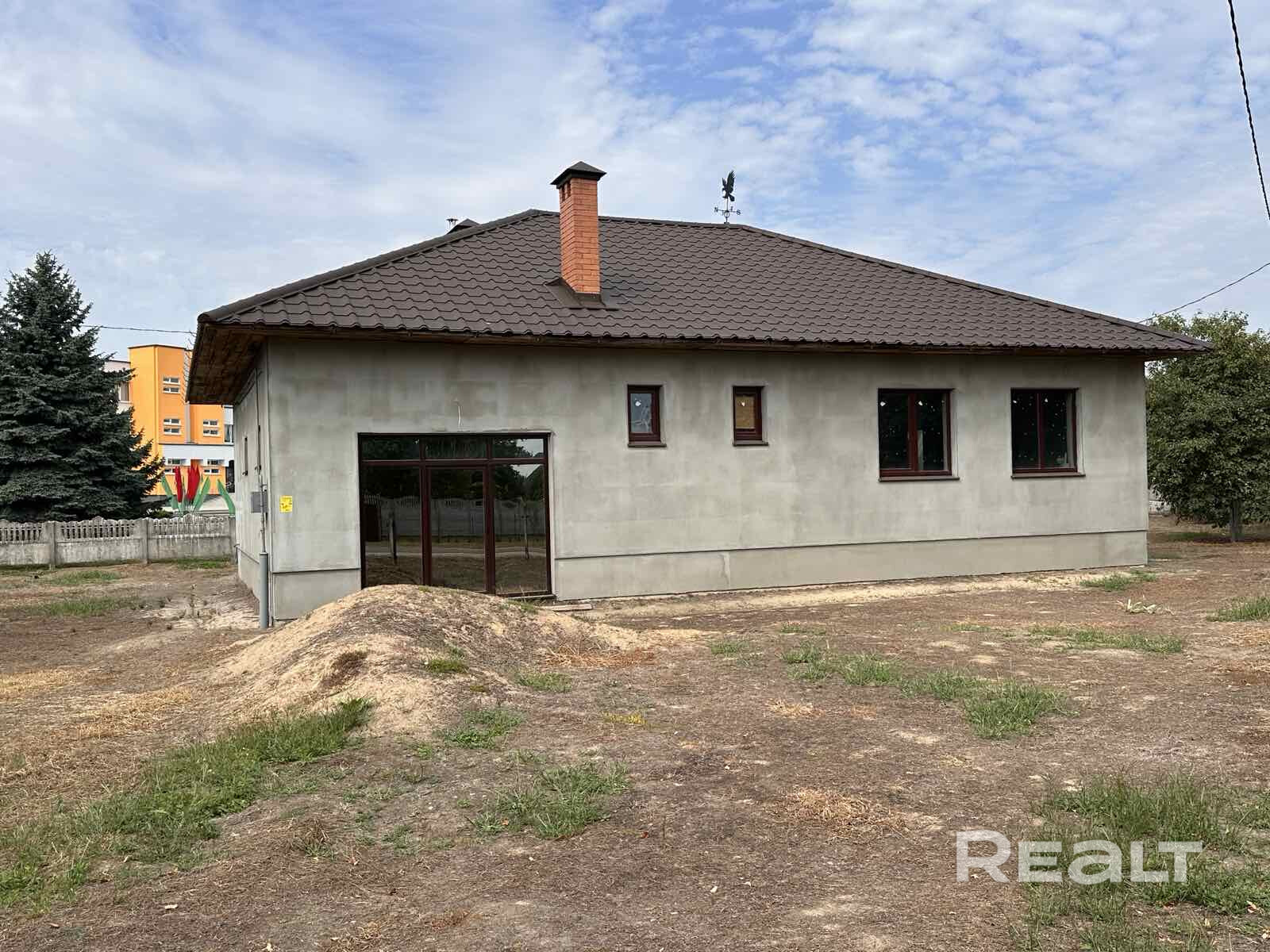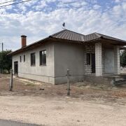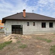 Фундамент бетонный, стены из газосиликатного блока, кровля - металлочерепица. Установлены окна ПВХ, входная дверь металлическая. Дом готов к чистовой отделке. 2017 г постройки. Высота потолков 3 метра. Дом состоит из просторного жилого помещения, кухни, раздельного санузла, гаража, котельной. Есть возможность сделать жилые комнаты на мансардном этаже.