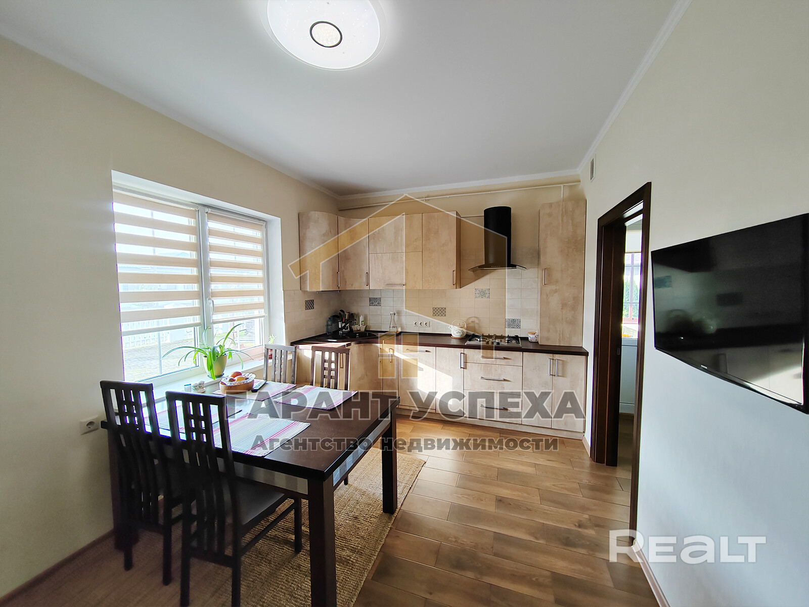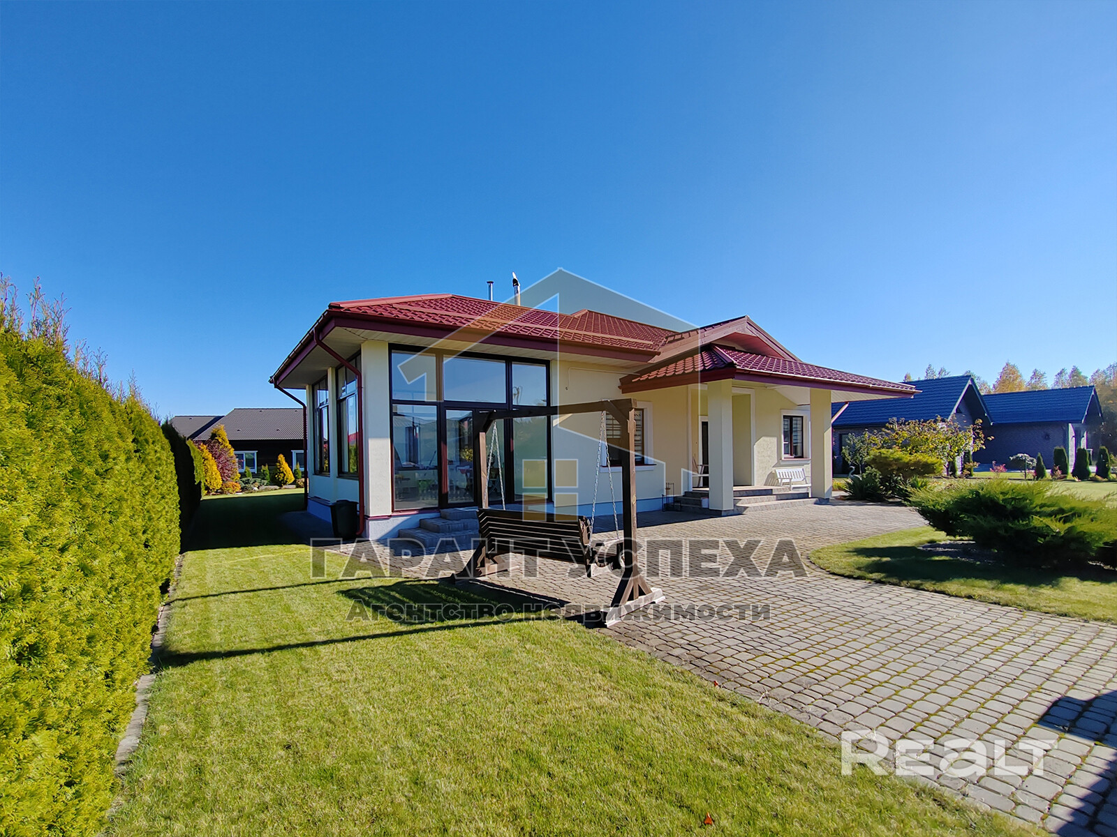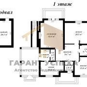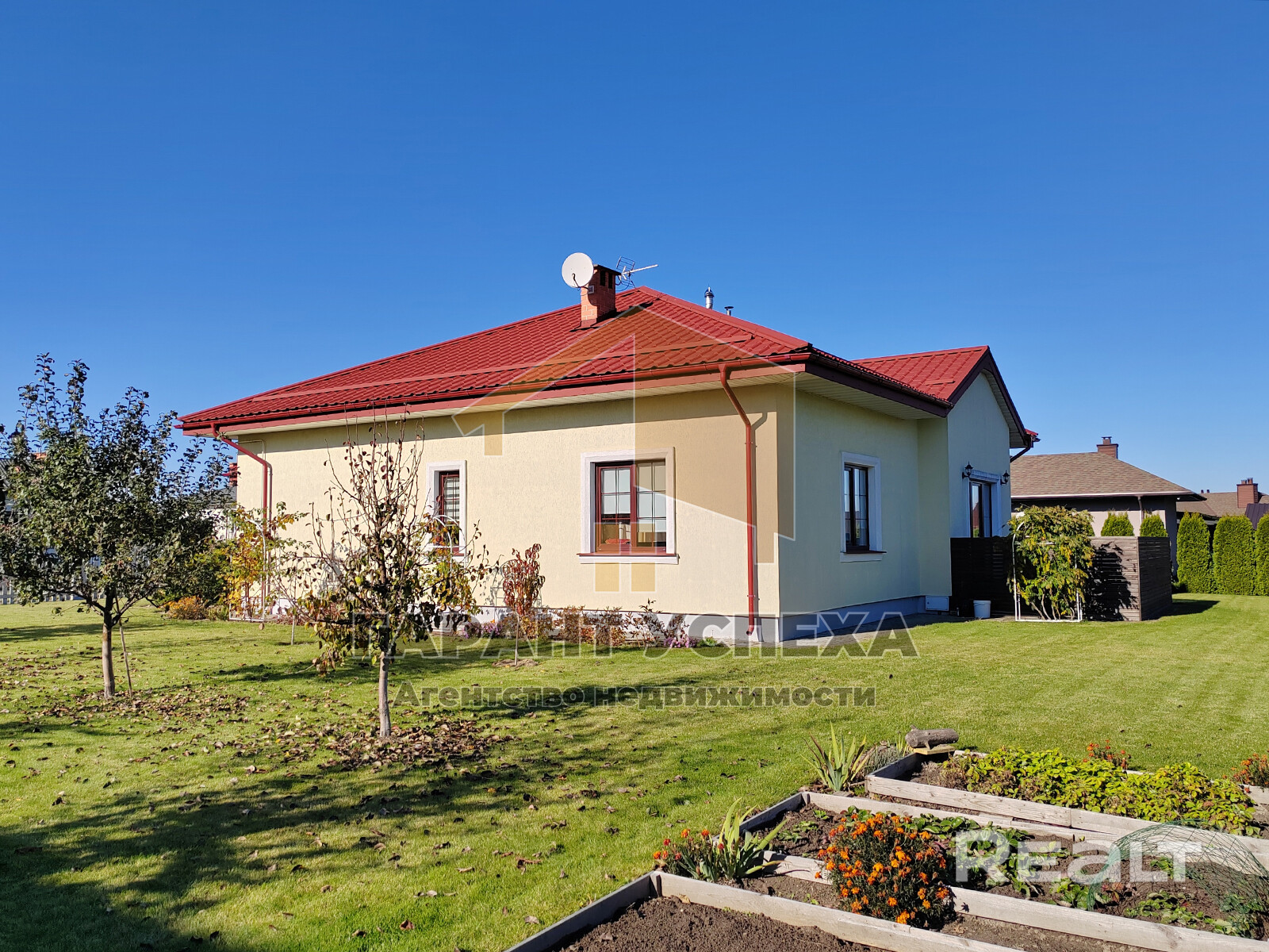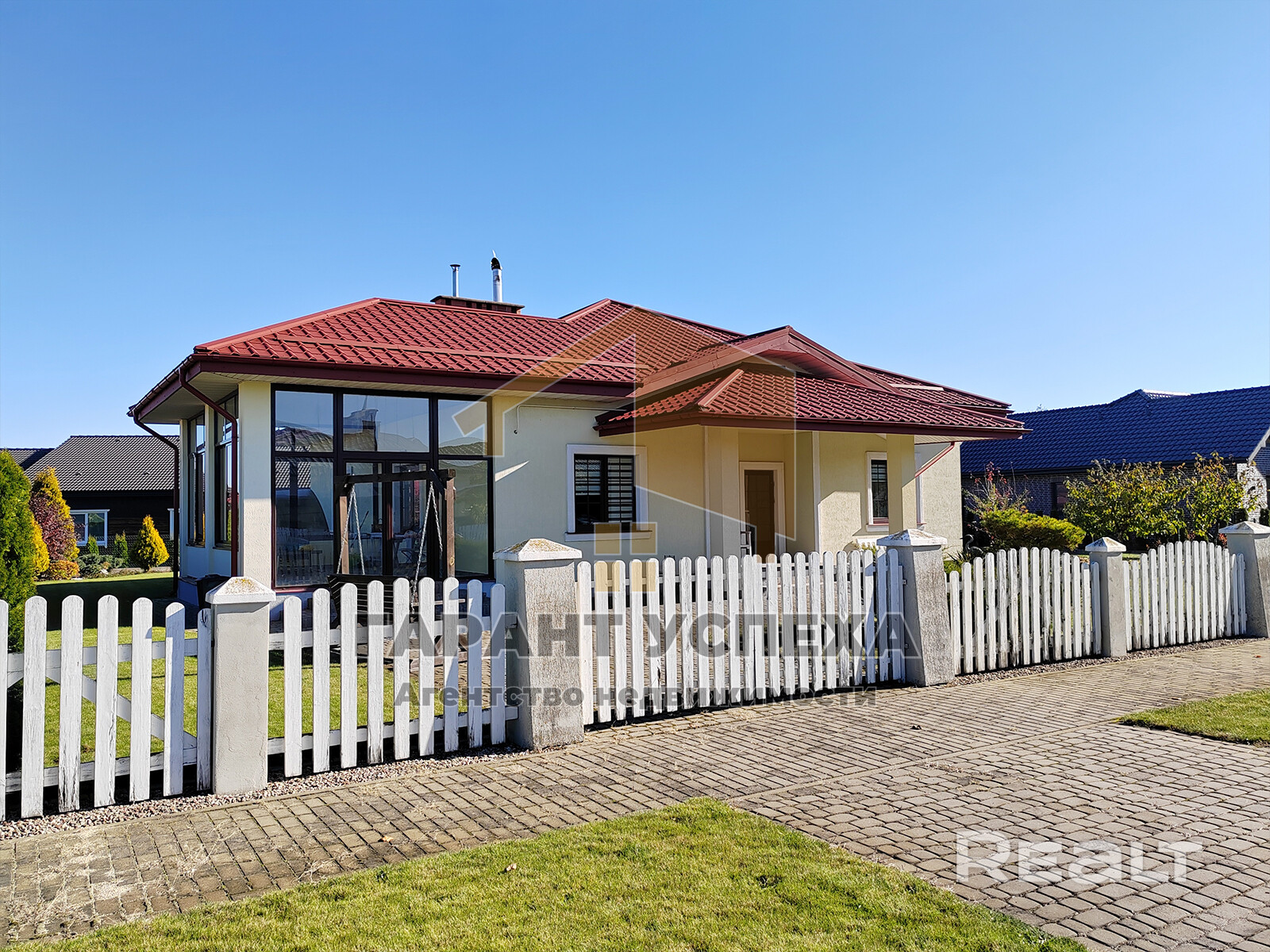Общая площадь жилых помещений составляет 125,6 кв.м., жилая – 75,9 кв.м. В доме имеются три жилых комнаты, одна из которых просторная гостиная (32,4 кв.м) с действующим камином, и практически таких же размеров одна из спален. Помимо указанных помещений в доме есть большая кухня, два совмещённых санузла, две террасы, при этом одна полностью закрыта от непогоды, прихожая, тамбур и топочная. С тыльной стороны дома под террасой предусмотрен подвал площадью 20,3 кв.м.