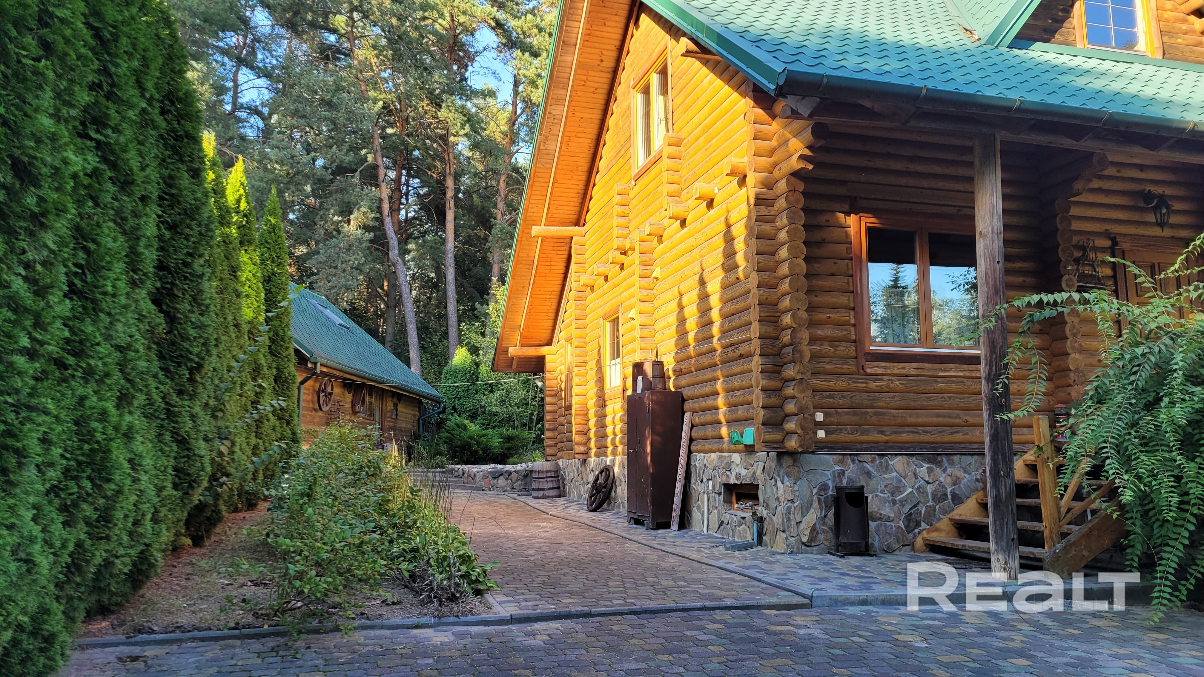 Покупая этот объект, Покупатель не платит агентству комиссию! Эксклюзивное предложение! На берегу реки Муховец в 800 метрах от небольшой деревни Тельминского сельсовета продается дом жилой 2008 года постройки из строительного бруса с летним садовым домиком и баней в традиционном русском стиле. Это отличный выбор для тех , кто ценит экологичность, уют и естественный микроклимат , благодаря теплоизоляции и эстетике натурального дерева. Жилой мансардный дом площадью 227,6/136,7/9 м2 находится на спаренном участке общей площадью 24,43 сотки. Фундамент-ленточный монолитный. Стены дома из строительного бруса, кровля-металлочерепица, окна деревянные ПВХ. Полы с подогревом. На первом этаже функционально размещены места общего пользования, просторная гостиная - 23,4 м2 с выходом на террасу, кухня 9 м2 полностью, укомплектованная всеми необходимыми бытовыми приборами, ванная комната и вспомогательные помещения. На мансардном этаже - 2 просторные спальные комнаты с лоджией и второй санузел. Для отделки помещений дома использована древесина ценных пород- натуральный материал, создающий здоровый микроклимат всего дома. Деревянная мебель ручной работы, которая продаётся вместе с домом, дополняет его уютную атмосферу. Земельный участок, состоящий из двух смежных участков общей площадью 24,43 сотки по периметру огорожен добротным забором. На территории с ландшафтным дизайном расположен отдельно стоящий садовый летний домик - 51 м2, стены - кирпичные с имитацией бруса. Неподалёку расположена летняя кухня, отдельно стоящая баня с комнатой отдыха, оборудованная крытая площадка для барбекю, сарай, дровница и гараж для лодки. Коммуникации : электроснабжение - централизованное, водоснабжение-скважина и гидрофор, отопление - электрический и твердотопливный котлы, канализация автономная. При желании весь жилой комплекс может использоваться под агроусадьбу. Современный коттедж в виде "терема" удачно расположен в живописном лесном массиве на берегу реки. Неподалеку находится деревня с почтой, школой, детским садом, магазинами. Расстояние до г. Бреста всего 17 км, что удобно при наличии рабочего места в черте города. Прекрасное предложение для тех, кто ценит уединение и живописные уголки дикой природы! Код объекта 25125