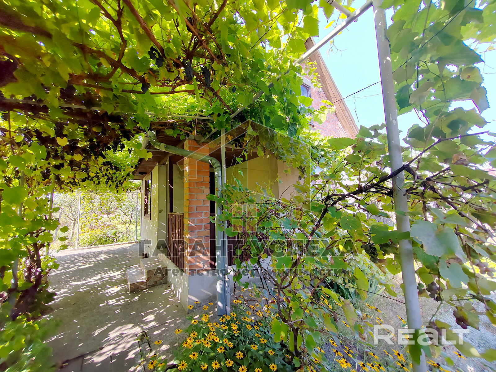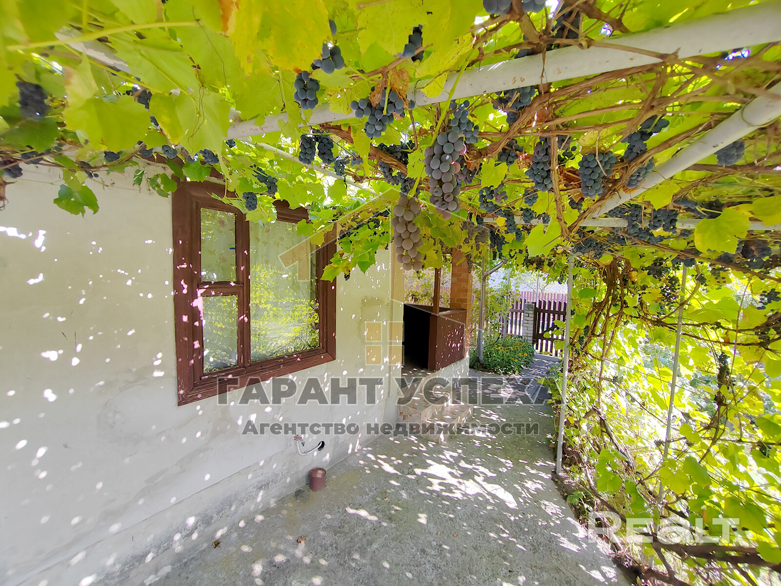 Общая площадь дома составляет 50 кв.м., жилая – 33,8 кв.м. В доме имеются кухня площадью 6,7 кв.м, две жилые комнаты, одна из которых на мансардном этаже. Тепло и уют в комнатах создаются благодаря двум каминам, рядом с которыми приятно будет провести время в прохладную осеннюю погоду. При входе в дом имеется небольшая крытая терраса. А в тёплую погоду Вы сможете комфортно разместиться уже под живой виноградной террасой со своими близкими и друзьями за чашкой ароматного чая.