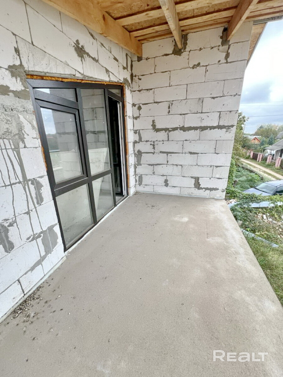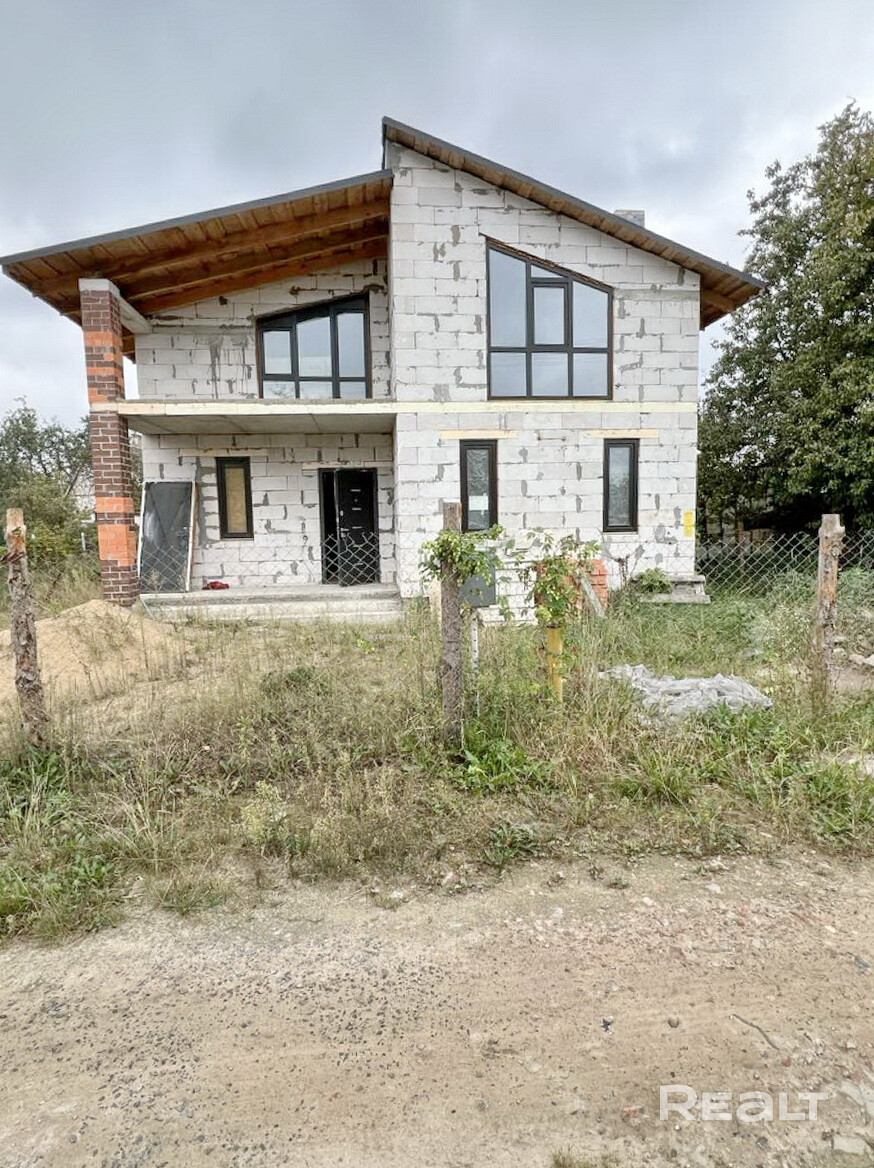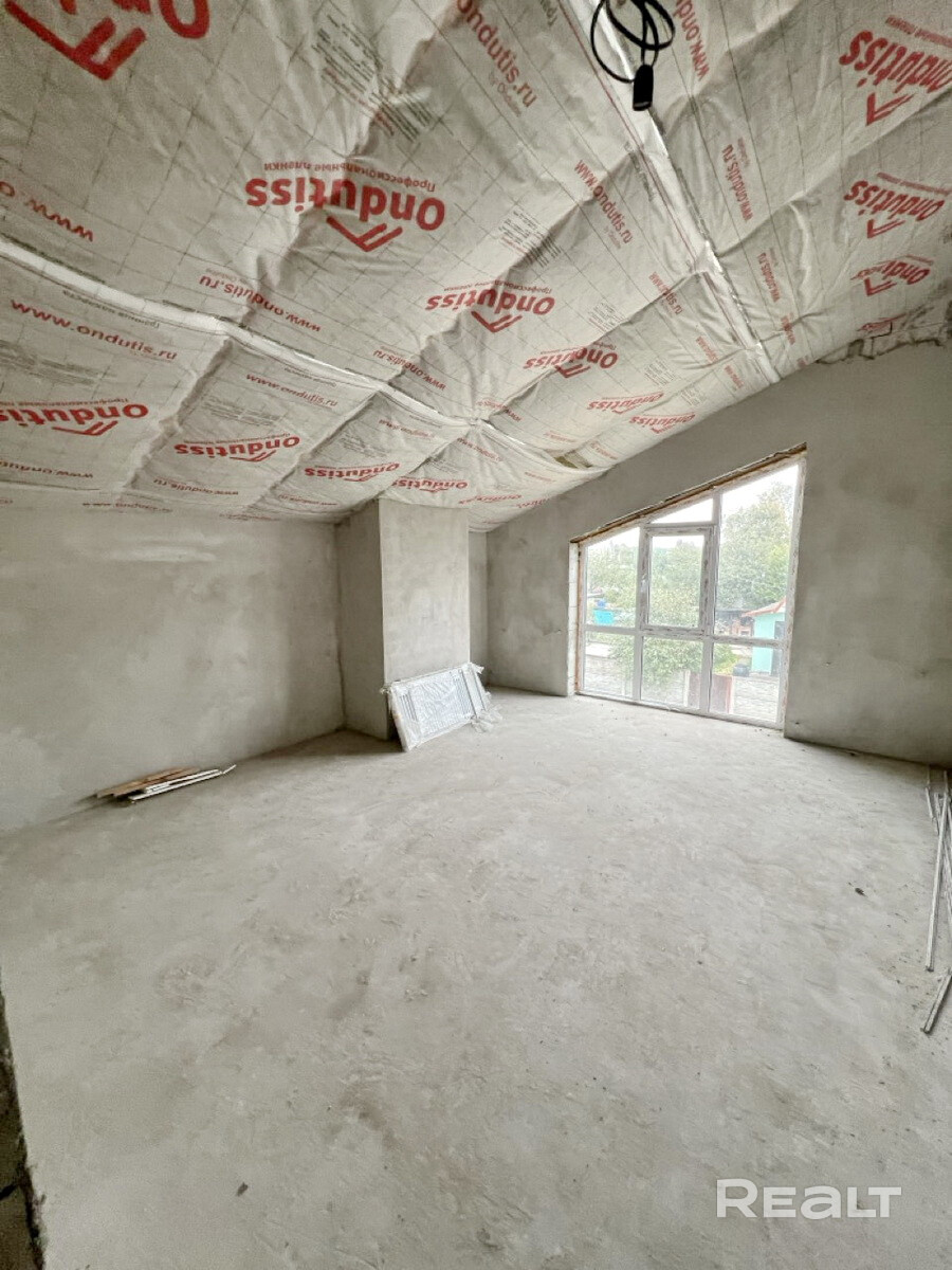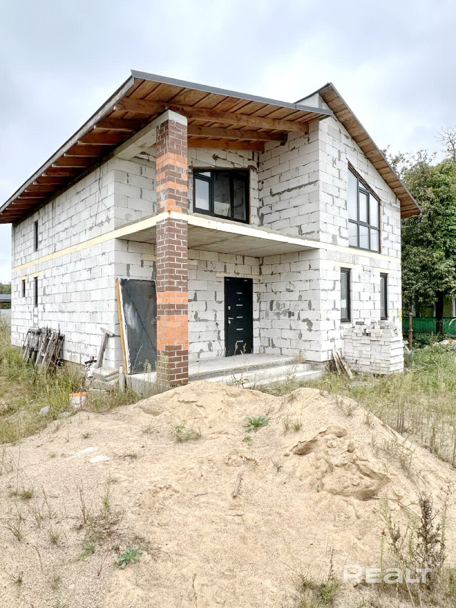Дом под чистовую отделку мансардного типа , Брестский р-н, Мухавецкий с/с, 2021 г.п., 1/2 блочный,крыша-гибкая кровля, фундамент -монолит 1,20 м, перекрытия монолитные, 75,8/, 34,9- площадь первого этажа, на втором этаже 3 комнаты и гардеробная, с/у 2, крыша-гибкая кровля .