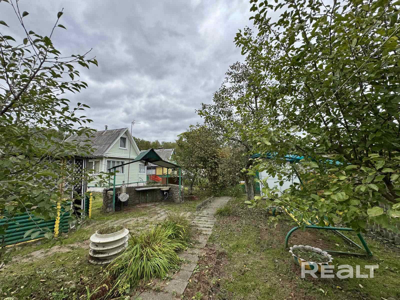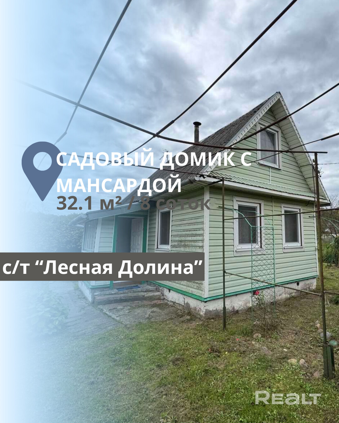 Продается одноэтажный садовый домик с мансардой в СТ "Лесная долина", построенный в 1987 году. Общая площадь составляет 32,1 кв.м, в доме расположены две комнаты. Стены выполнены из сборно-щитового материала, а фасад отделан виниловым сайдингом. Кровля — шифер, а фундамент — ленточный-монолитный из бетона. Коммуникации включают печное отопление (камин), централизованный газ (по улице, взносы не оплачены), водоснабжение от скважины с гидрофором и централизованное электричество. На участке находятся два сарая, две теплицы, беседка с противомоскитной сеткой, зона для барбекю и летний душ с электрическим бойлером. Площадь участка составляет 0,0413 + 0,0386 га, что создает комфортные условия для отдыха и ведения дачного хозяйства.