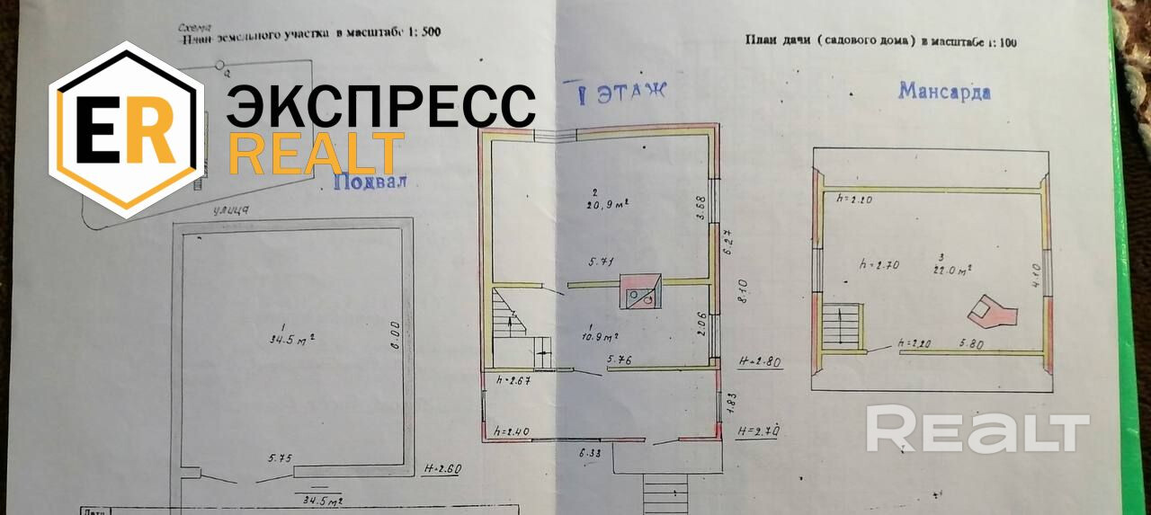 спальня на мансардном этаже 22 м2, подвал 34,5 м2