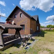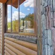 Общая площадь здания составляет 139,9 кв.м, жилая – 95,6 кв.м. В доме имеются: кухня-столовая площадью почти 15 кв.м, просторная 30 метровая гостиная, совмещённый санузел. Приватная зона мансардного этажа включает в себя две спальни под скошенной крышей с массой потайных секций в виде гардеробных и стенных шкафов. При входе в дом расположена закрытая терраса с мебелью из массива дерева.