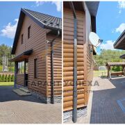Здание имеет ленточный бетонный монолитный фундамент, наружные стены выполнены из кирпича, а мансардный этаж имеет стены из газосиликатных блоков, фасад облагорожен металлическим Блок Хаусом, а на кровлю уложена металлочерепица. Сток ливнёвой канализация разведен в виде дренажа по участку. Во всём доме вставлены ламинированные окна с профилем ПВХ.