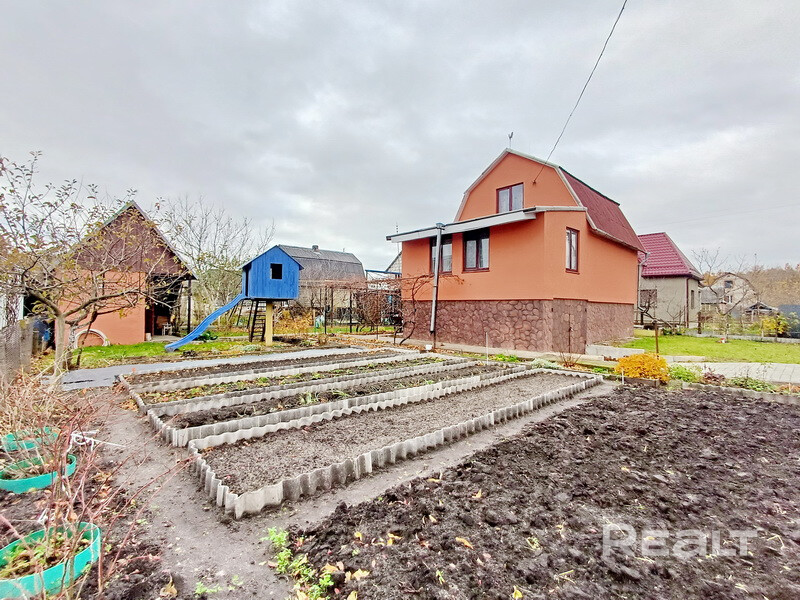 Садовый домик, ближайший пригород г. Бреста, СТ "Жемчужина-1988", направление Мухавецкое. 1 этаж +мансарда,2 комнаты, материал стен газосиликатный блок оштукатурен, кровля-шифер, общая площадь 123,2 м.кв. Коммуникации: электричество, водоснабжение-скважина, газоснабжение-централизованно по улице. Участок 0,0500 га., огорожен по периметру, ухожен. На участке есть разноплановые хозяйственные постройки: сарай с душем и с/у, беседка.