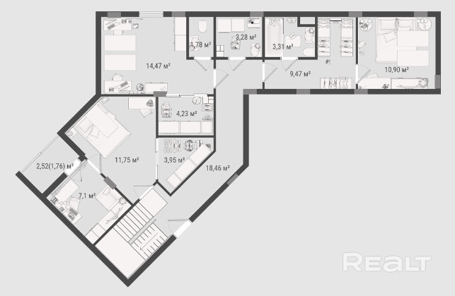 Двухуровневая семикомнатная квартира на верхних этажах секции Б 5-этажного дома жилого комплекса «Малиновка» в районе Красного двора.