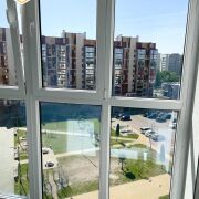 Кухня совмещенная с гостиной, лоджия застекленная , входная дверь металлическая, потолки - натяжные, полы - ламинат и плитка, в санузле современная плитка. В квартире остается кухонный гарнитур с встроенной электрической варочной поверхностью, встроенный шкаф (в коридоре).