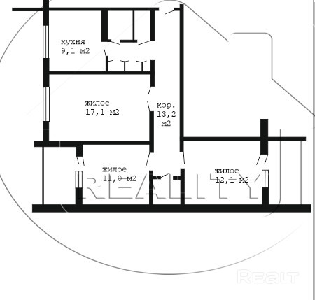 Квартира состоит из трех изолированных комнат, функционального коридора, с/у, двух застекленных лоджий и кухни.
