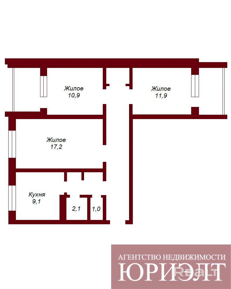 Лот. 58525 3-комнатная квартира, мкр. Ковалево