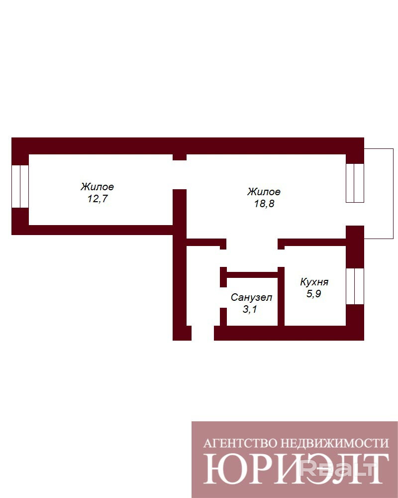 - Жилая площадь: 31.5 м2