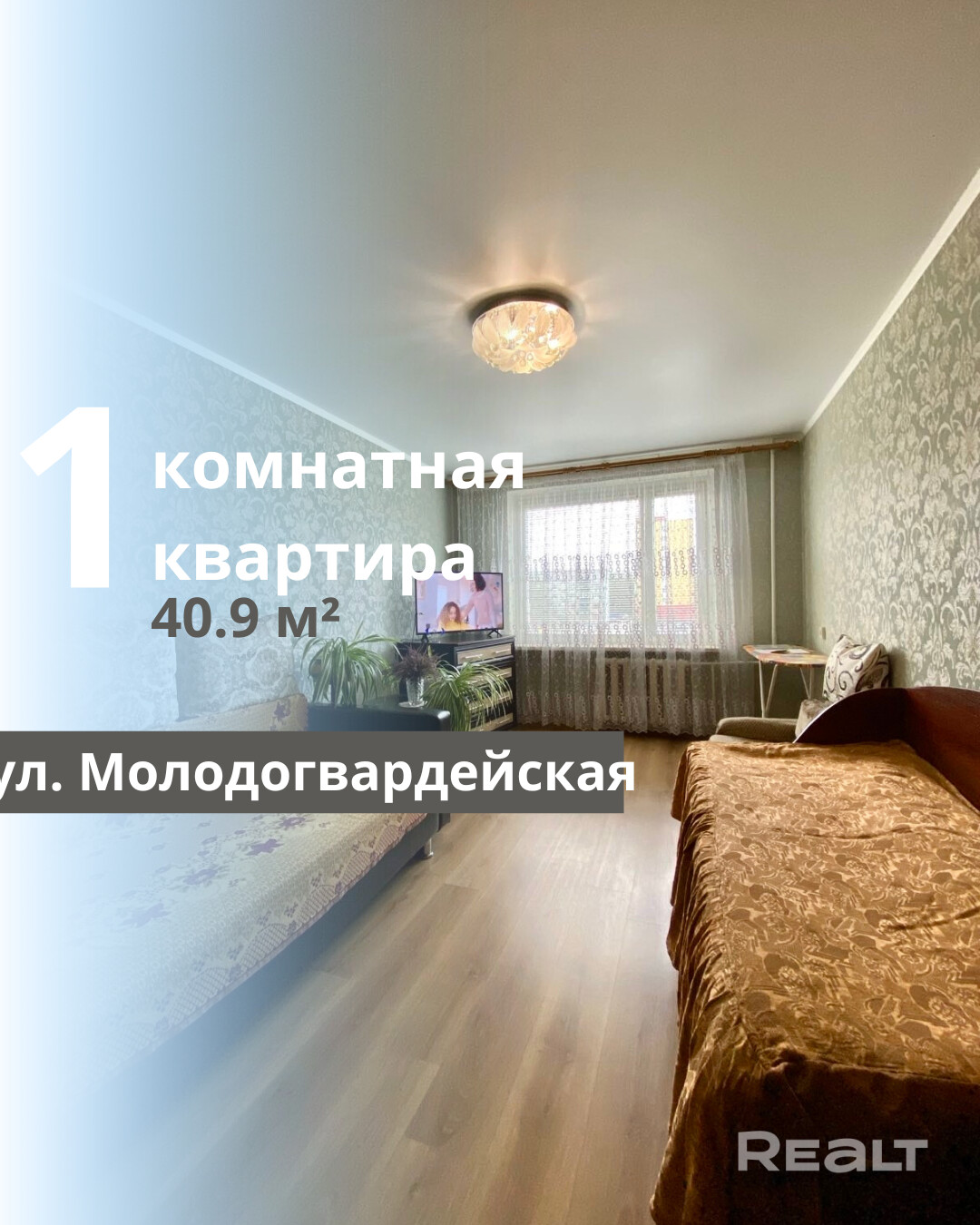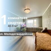 Продается 1-комнатная квартира на Молодогвардейской, построенная в 1997 году, расположенная на третьем этаже пятиэтажного панельного дома. Общая площадь квартиры составляет 40,9 квадратных метров, из которых 17 квадратных метров занимает комната и 9 квадратных метров — кухня. Квартира находится в хорошем жилом состоянии: санузел раздельный, трубы заменены. Входная дверь металлическая, полы выполнены из ламината в комнате и линолеума на кухне. Потолки оформлены касетонами в кухне и коридоре, а в комнате установлен натяжной сатин. Стены оклеены обоями. Просторный коридор и прихожая создают комфортное ощущение пространства. Лестничная площадка большая, подъезд чистый, а придомовая территория ухоженная, с обширной парковкой и современной детской площадкой. Дом расположен в глубине двора, а окна квартиры выходят на зеленую зону.