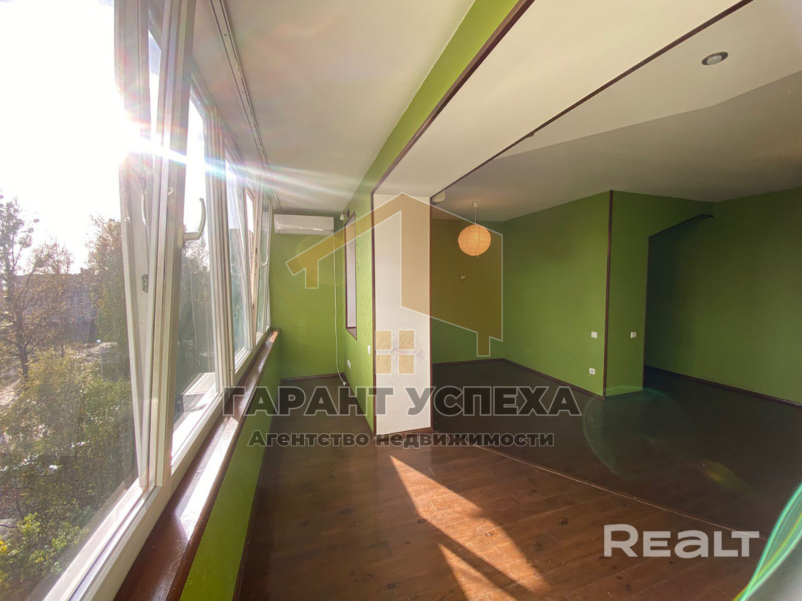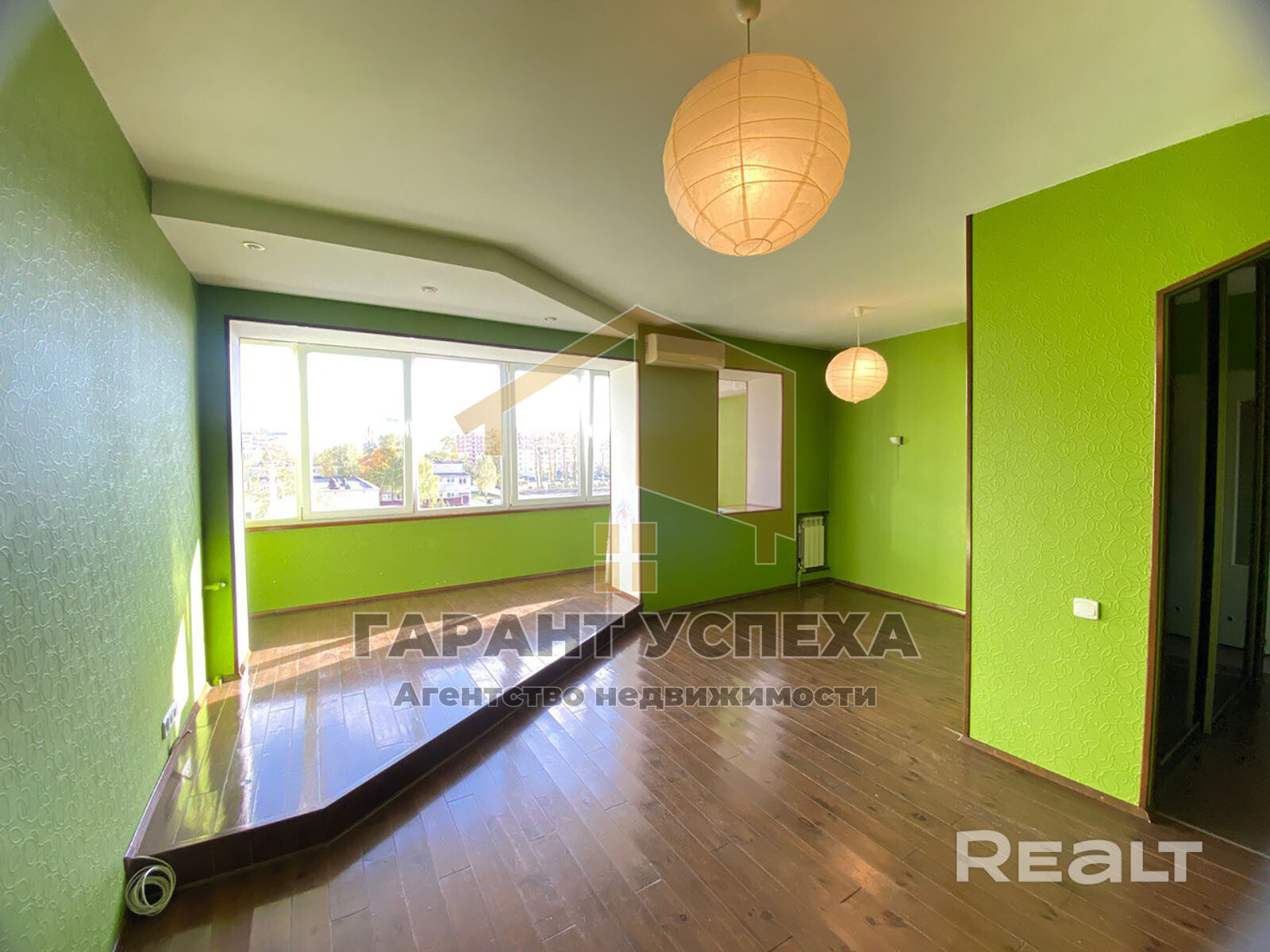 Продается 1-комнатная квартира в Бресте по ул. Писателя Смирнова. Квартира расположена на 5 этаже в 5-этажном кирпичном доме 1982 года постройки. Общая площадь квартиры 43,5 м.кв, комната объединенная с лоджией - 27 м.кв., кухня - 6,6 м.кв.