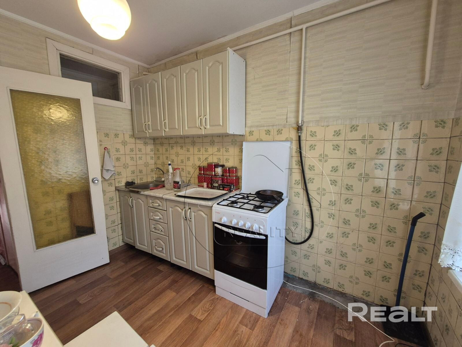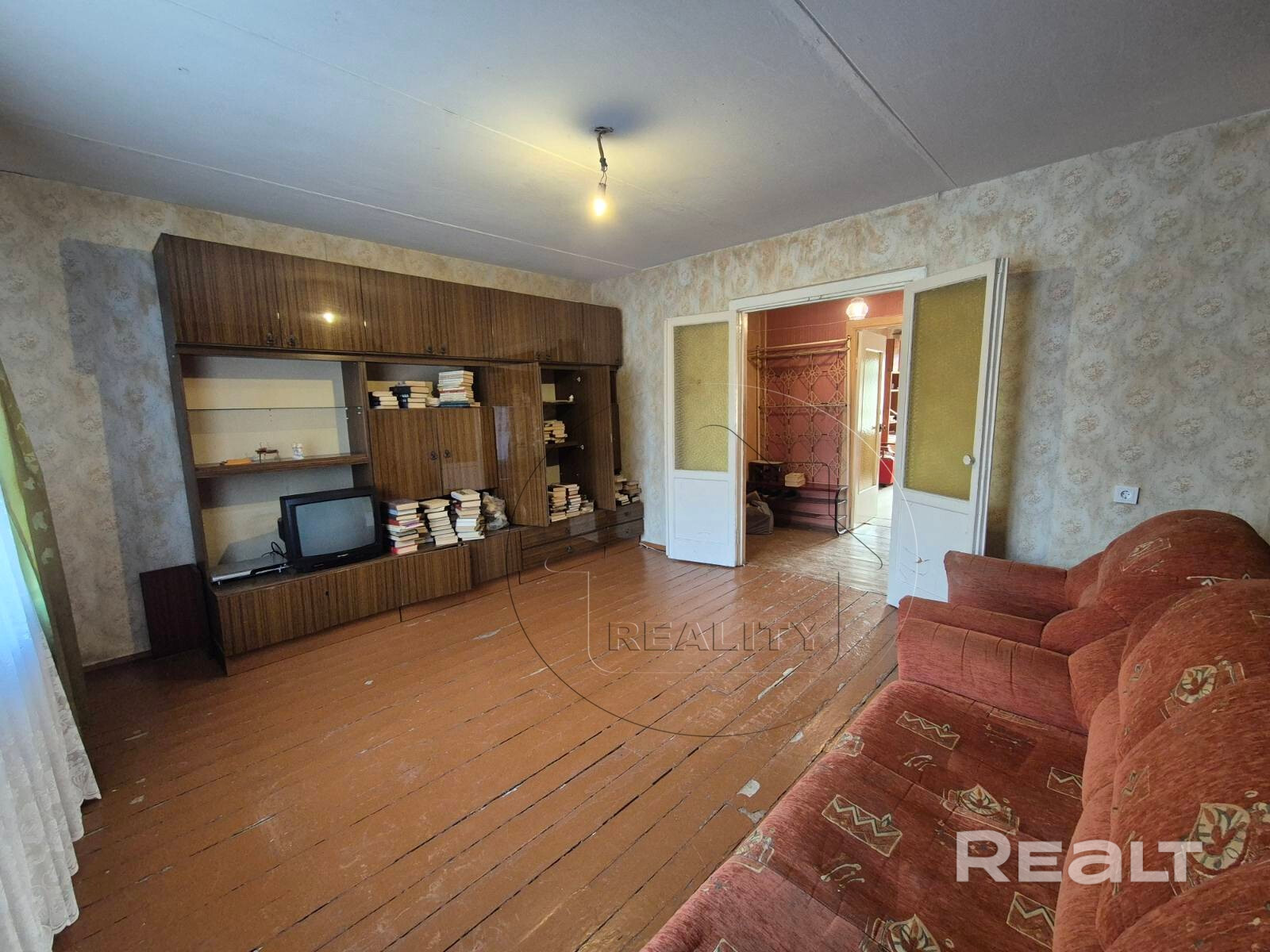 Квартира в жилом состоянии : полы - доска крашеная/линолеум, потолок – побелен, стены оклеены обоями, деревянные рамы на окнах, деревянные межкомнатные двери. Тихий, спокойный район, рядом брестская Крепость в шаговой доступности магазин, остановка общественного транспорта.