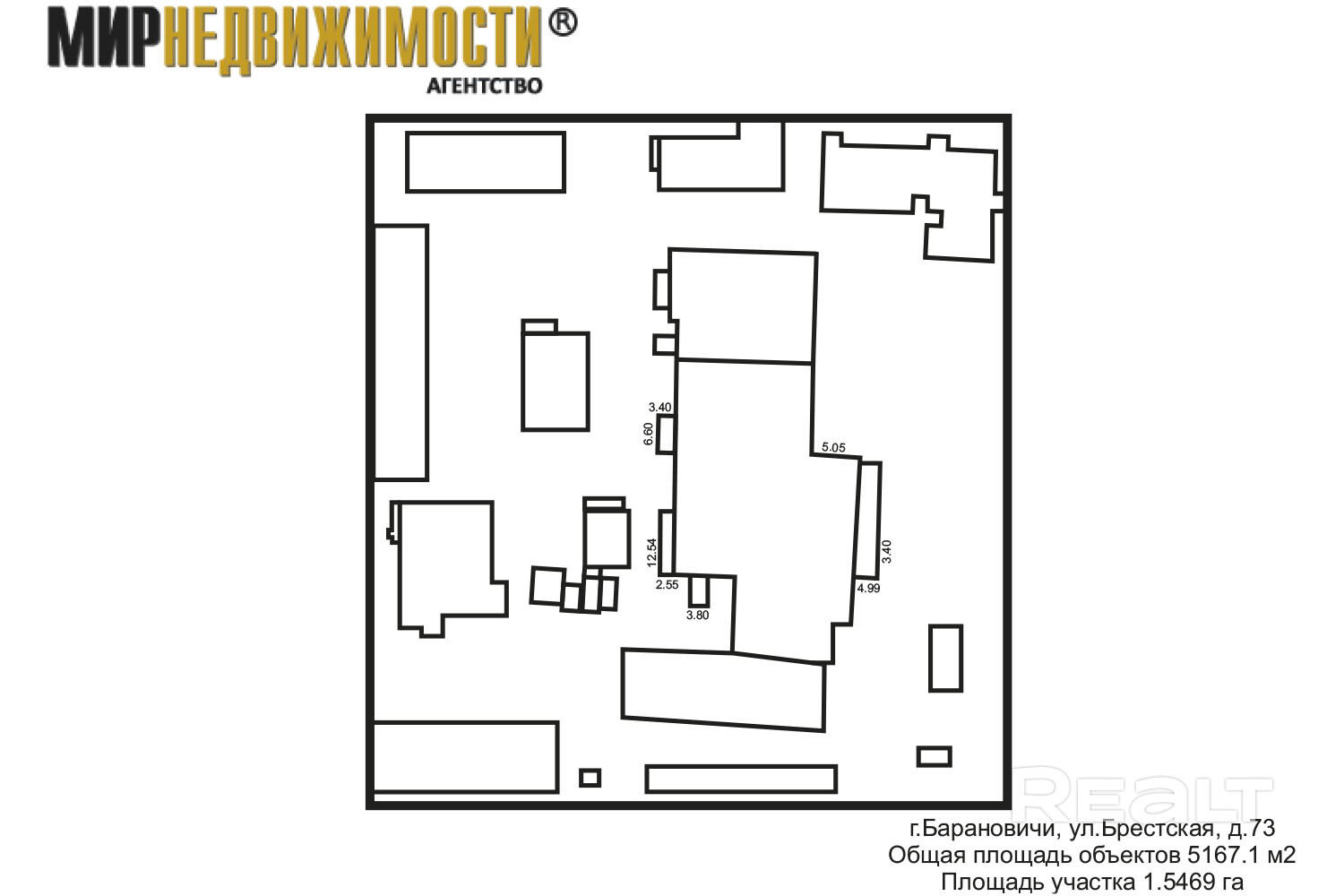 Производственный комплекс состоит из 11 зданий, отдельно расположенных на участке 1.5469 га в самом центре города Барановичи.