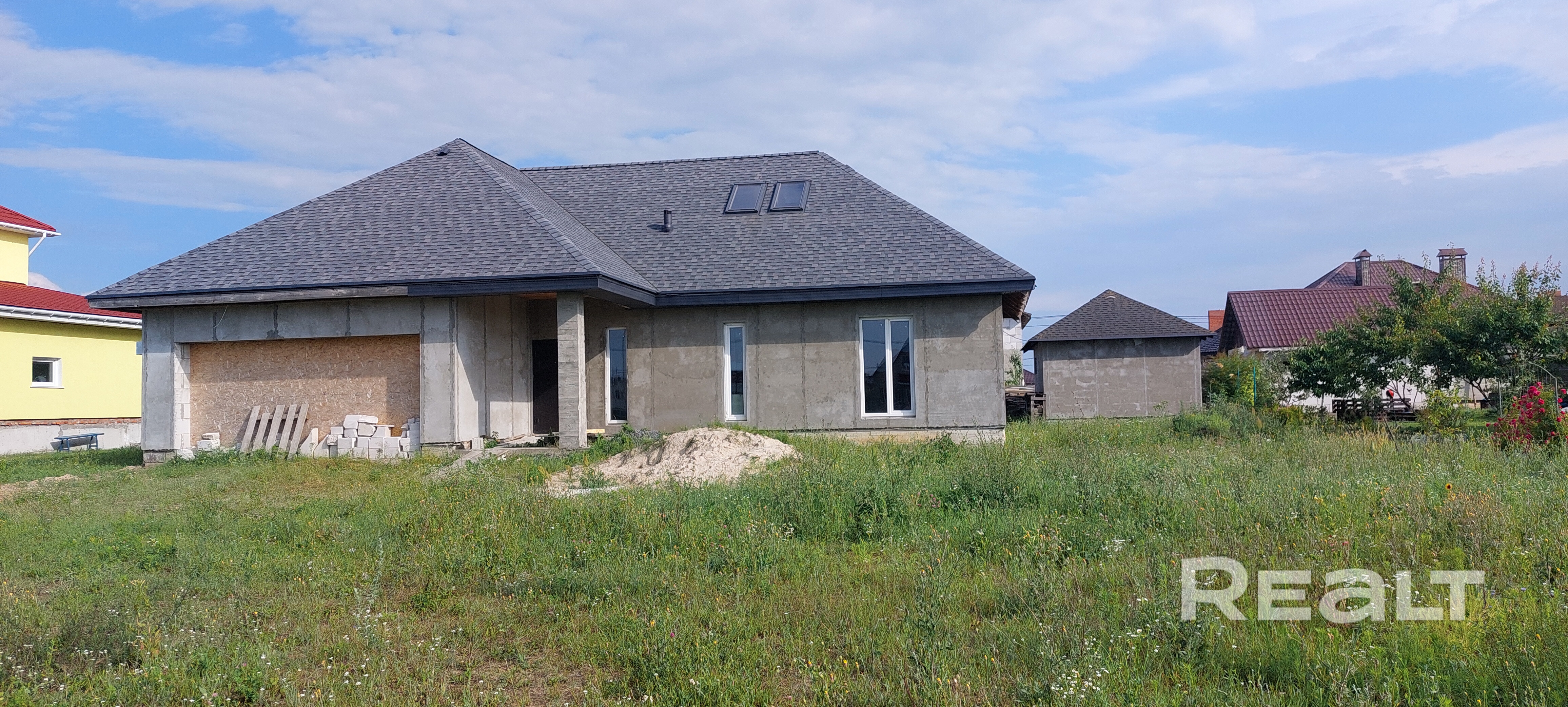 Дом 286 метров. Толщина стены около полуметра, 2 блока с воздушной подушкой. Кровля мягкая битумная черепица. 5 мансардных окон. Крыша утеплена. Все коммуникации в доме. Канализация центральная и в доме и в бане. Баня ролностью готова. Вода центральная и скважина в бане. Дом введён в эксплуатацию. Звонить 80445603371. Вайбер +375297322145.