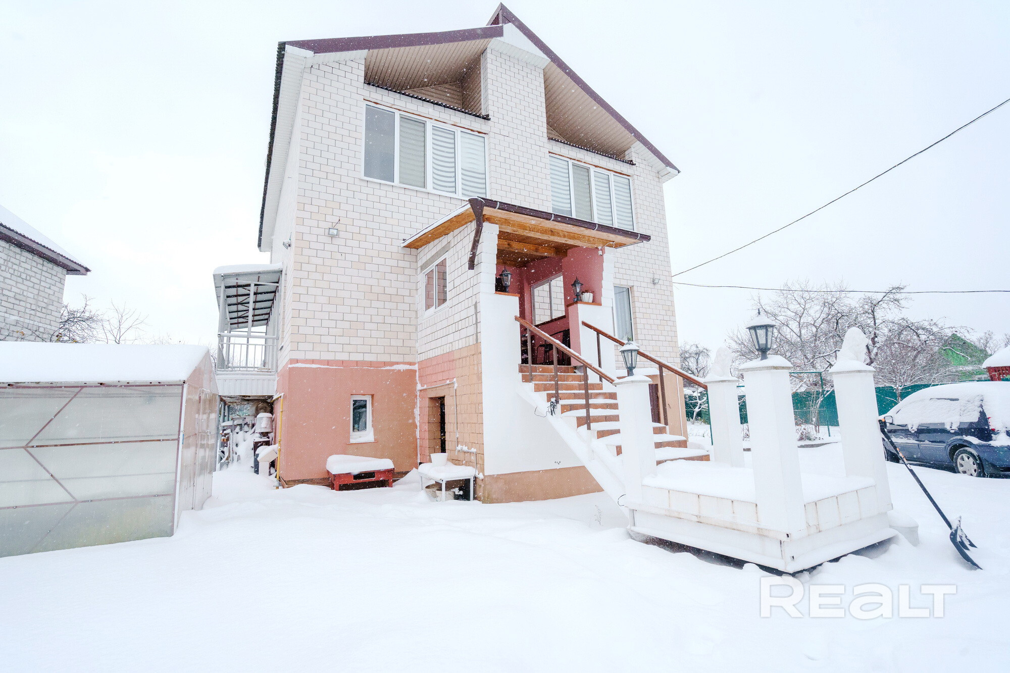 Установлены ворота с дистанционным управлением, видеонаблюдение по периметру участка. Также на участке расположены второй дом (59 м2), беседка и теплица.