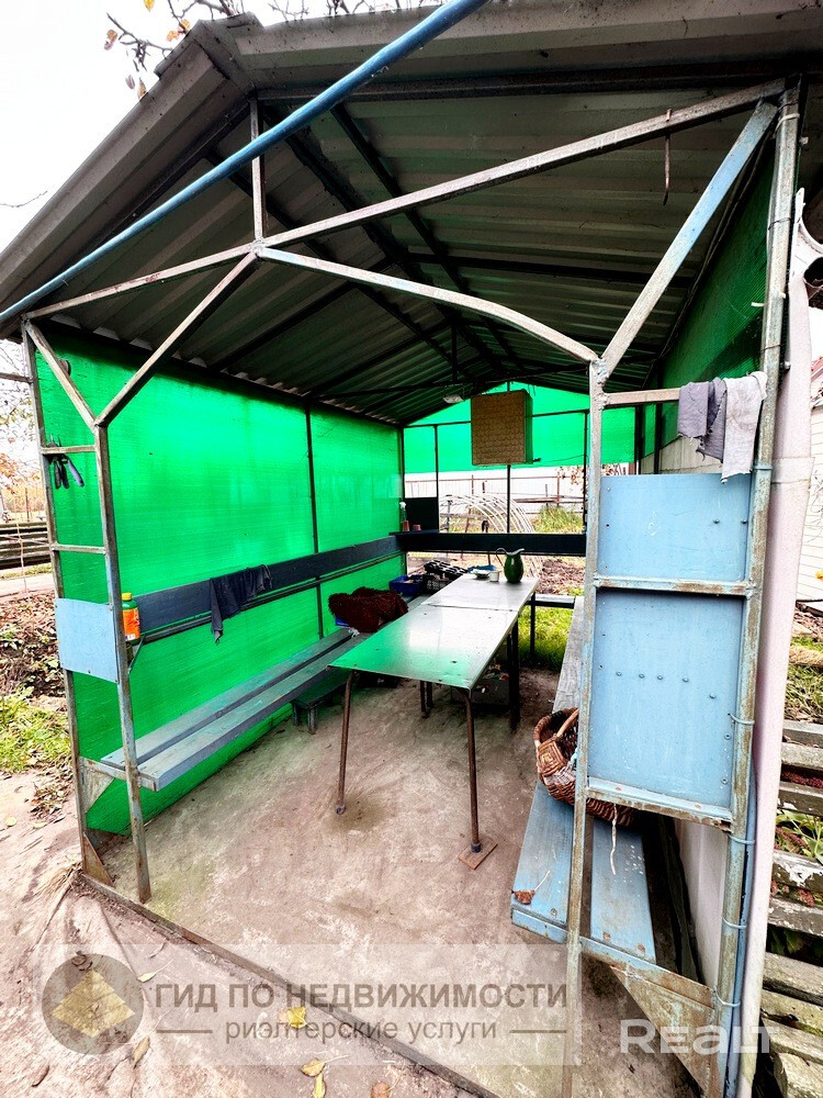 Дом расположен на земельном участке площадью 18,44 сотки. Участок ровный, прямоугольной формы, ухоженный, с освещением (установлен прожектор), огорожен забором с воротами для заезда автомобиля. Место высокое – не затапливает. Земля плодородная – чернозем, имеются плодово-ягодные насаждения. Так же на земельном участке расположены действующая баня, кирпичный гараж, площадью 22,4 кв.м., 3 навеса, глубокий, прохладный погреб, сарай и бытовка для инвентаря с освещением, беседка, парник из поликарбоната, 2 скважины 16 метров с автоматической насосной станцией.