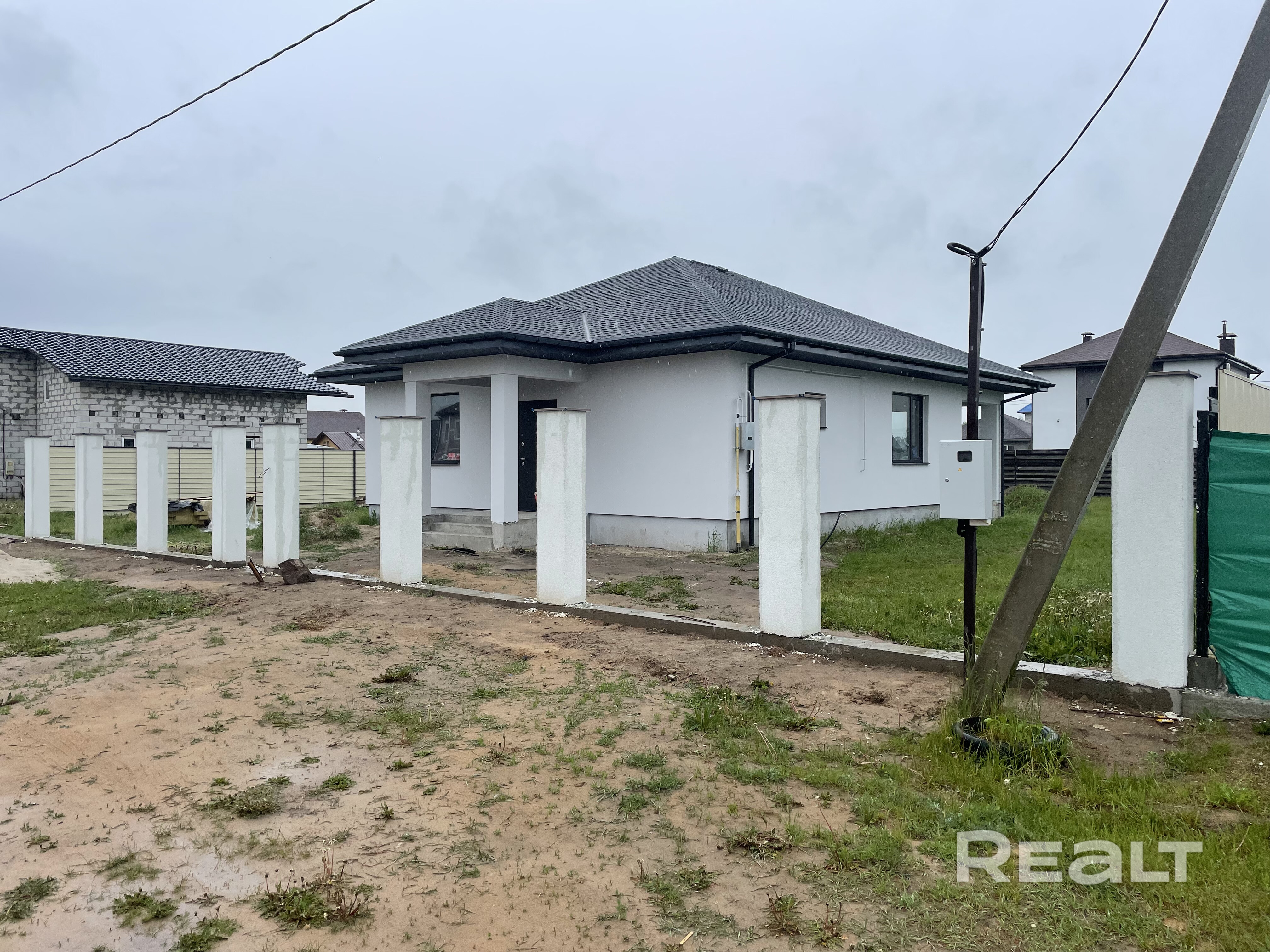 Новый современный дом, утепление фасада 100 мм каменной ватой, утеплена крыша 200 мм ватой, утеплен цоколь, сделана электрика, стены оштукатурены, все коммуникации в доме, остальные вопросы по телефону