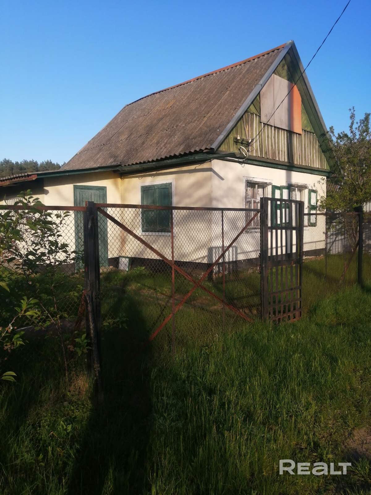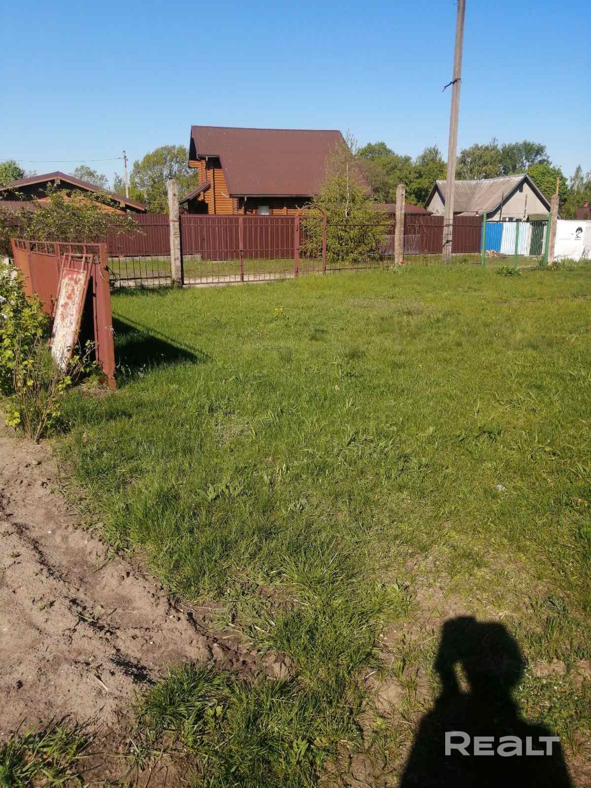 Подъезд к участку осуществляется по широкой дороге (не внутри кооператива). Перед участком есть 2 сотки земли под стоянку (у некоторых под посадку культур) этот участок отгорожен от основной дороги забором с металлическими воротами. Непосредственно сам участок на котором находится домик 4,2 сотки. Рядом р. Сож, примерно 300-400 метров, но при этом участок не подтапливает никогда. В доме проведены газ, вода, электричество (счетчики установлены).