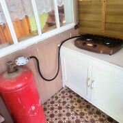 Электричество в доме, газ привозной в баллонах, есть газовая плита.