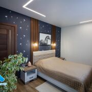 Встроенная многоуровневая система освещения и декоративных подсветок позволит создать в квартире атмосферу для любого случая.