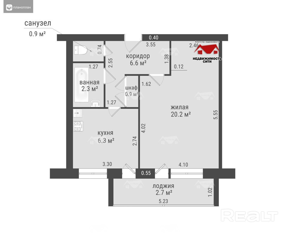 6.3 м²