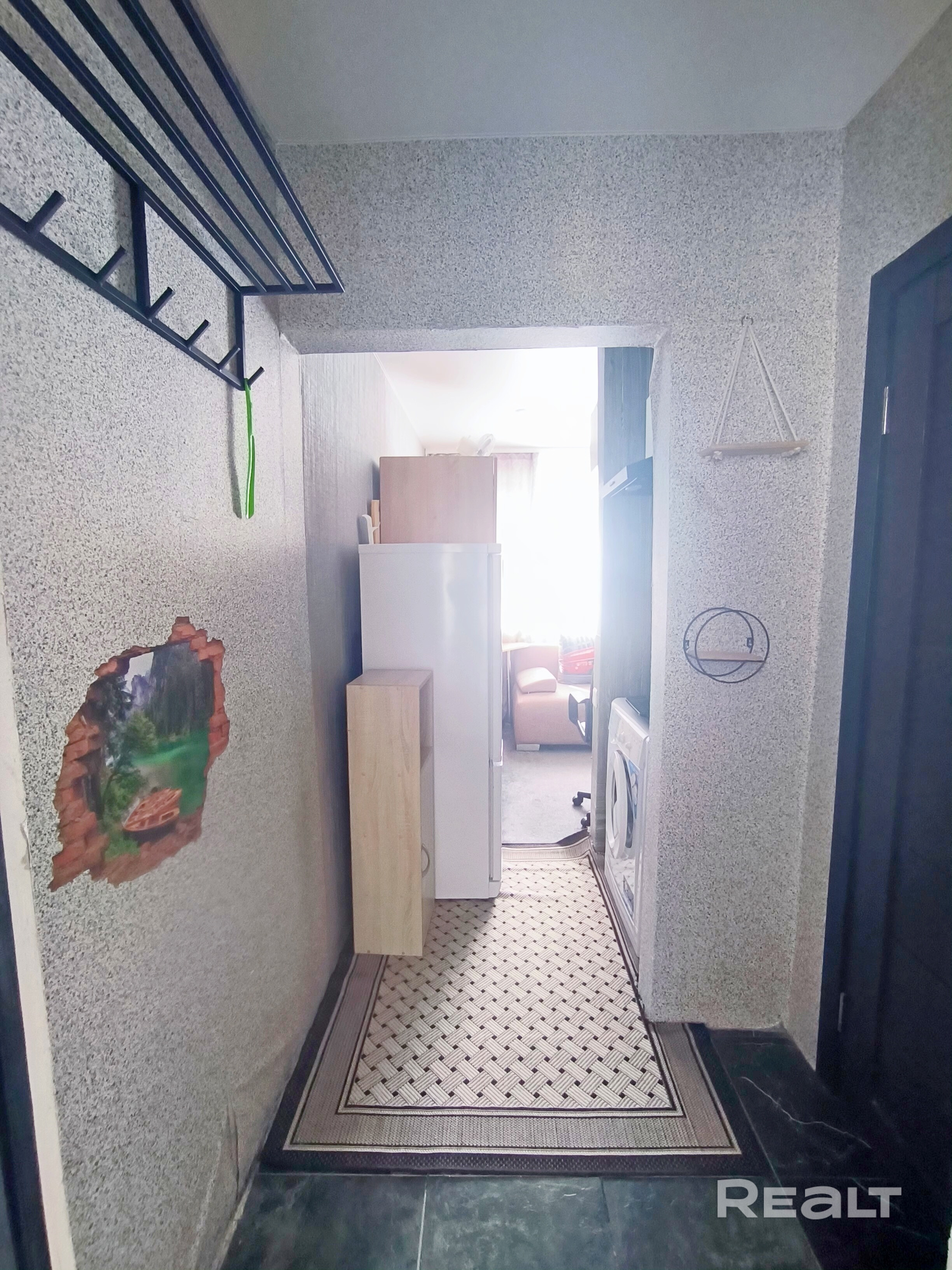 Продается квартира-студия(апартаменты) в районе Аэропорта Гомель, в здании гостиницы «Полет». Квартира со свежим дизайнерским ремонтом в теплом кирпичном доме 1987 года. Дом после капитального ремонта, все коммуникации, проводка и водопровод новые. В квартире окно ПВХ с видом во двор, на полу плитка, линолеум, новые межкомнатные и входные двери. Кухонный гарнитур остается при продаже, остальная мебель по договоренности. Есть электрическая плита, вытяжка. Сан.узел совмещен, сантехника новая. В квартире хорошая тепло и звукоизоляция. Установлены счетчики воды, много розеток.Квартира полностью готова к проживанию. В холле всегда чистота и порядок, есть охрана и уборщица. Частная собственность.