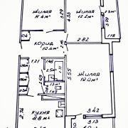 Широкие коридоры, три большие изолированные комнаты (19,0; 12,2 и 11,4 м.кв).