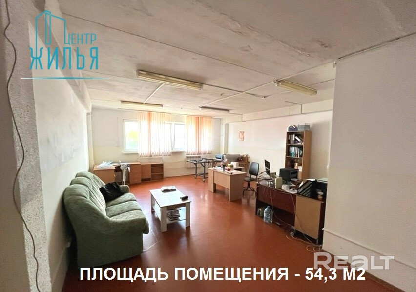 Офисная отделка, санузел на коридоре. Большая парковка у здания.