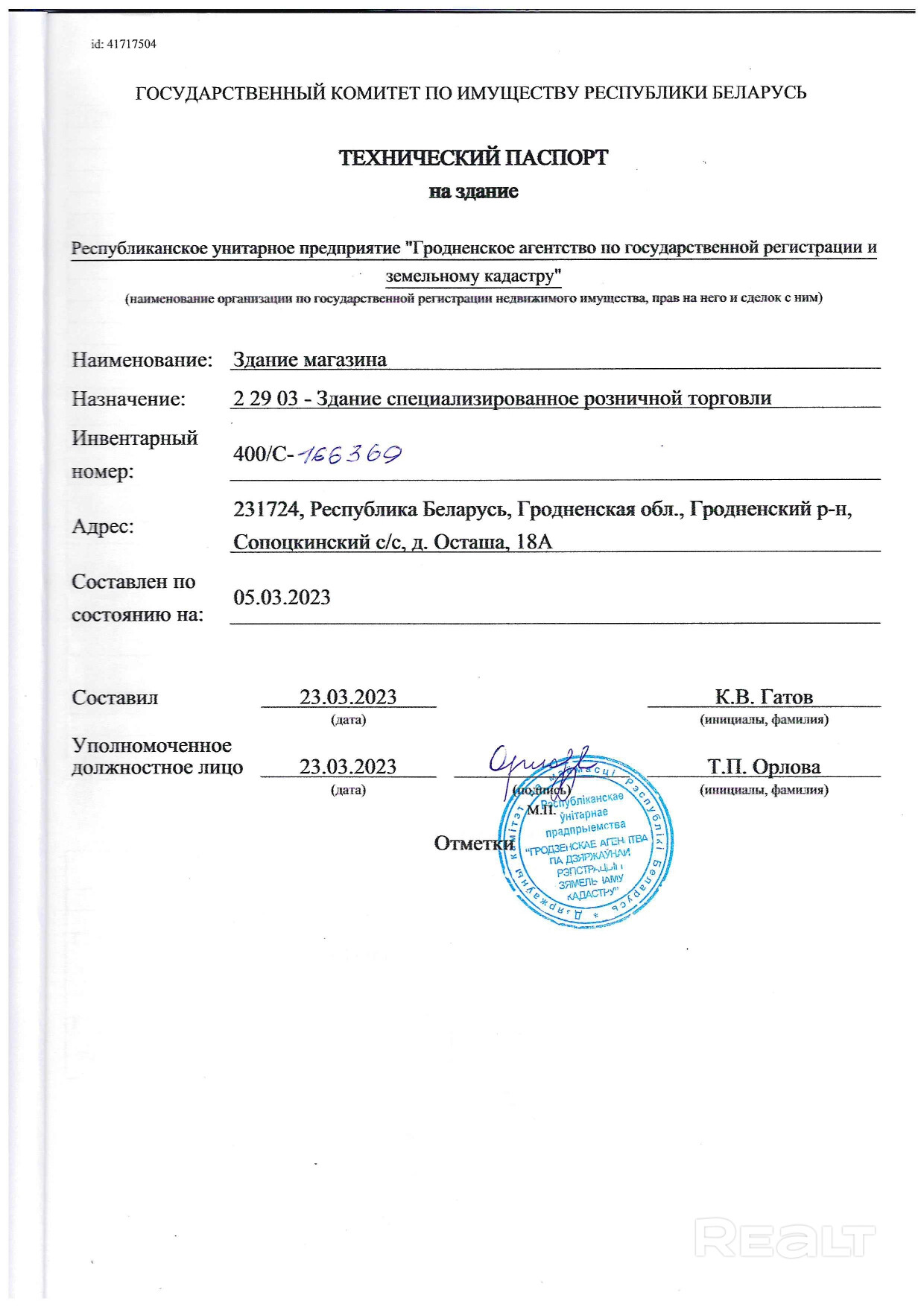 Аукцион 23.12.2025 здание магазина д.Осташа, 18А Сопоцкинского с/с Гродненского района