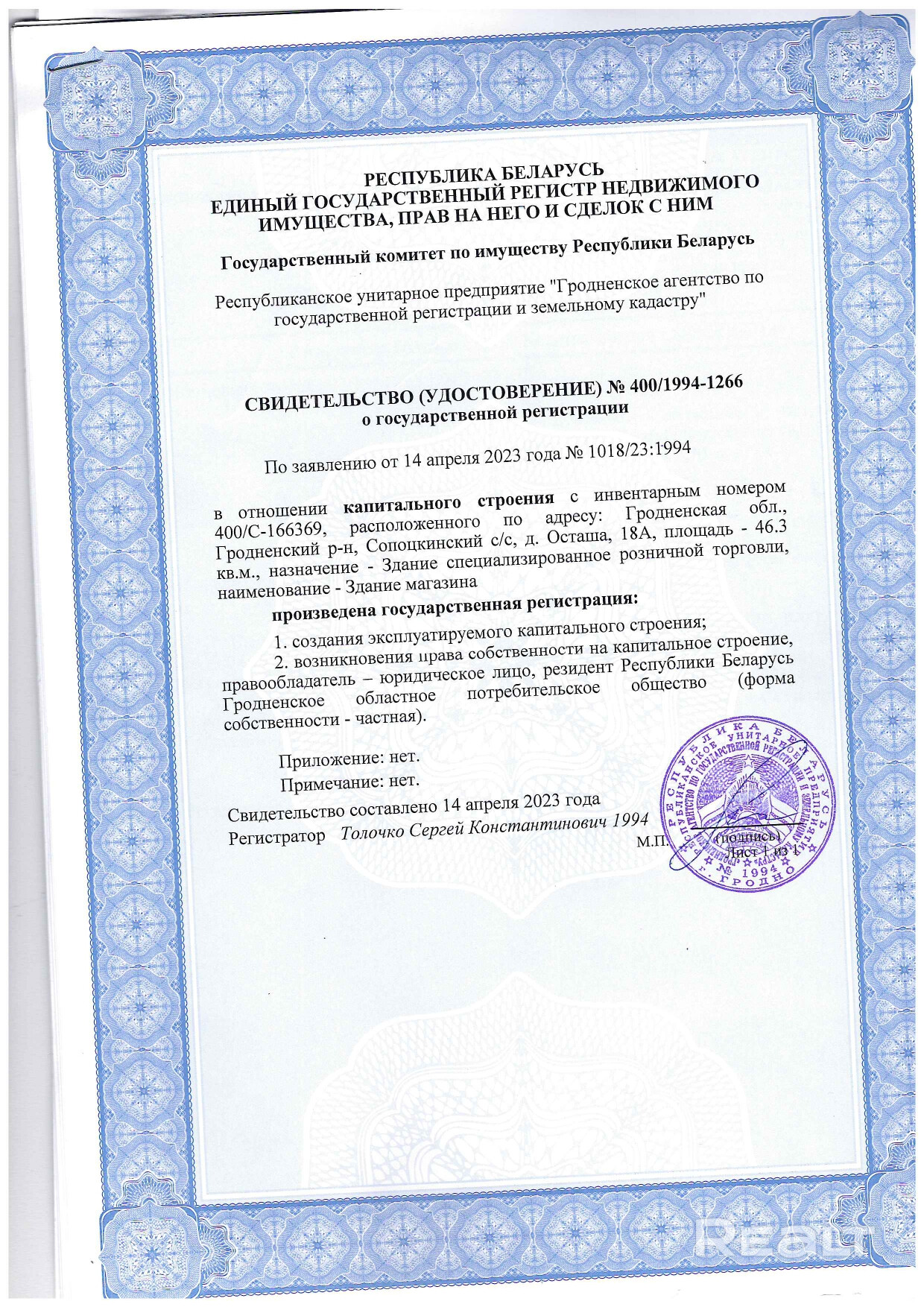 Объект принадлежит на праве собственности Гродненскому областному потребительскому обществу.